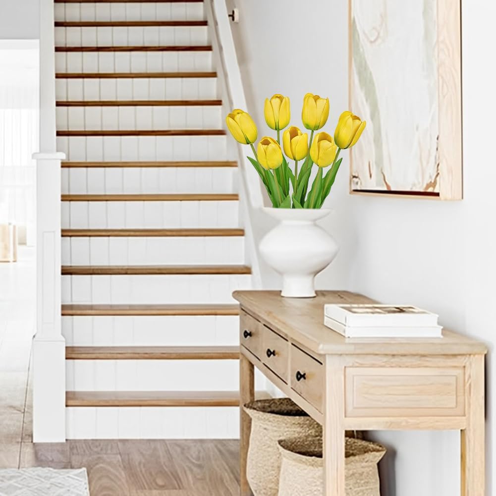 - LONG-LASTING, FADE-RESISTANT & EASY TO MAINTAIN: Made from high-quality, flexible PU material, these artificial tulip flowers maintain their realistic texture and vibrant color for years. Unlike fresh flowers, they require no watering, wilting, or upkeep, making them an effortless choice for home, office, or event decor