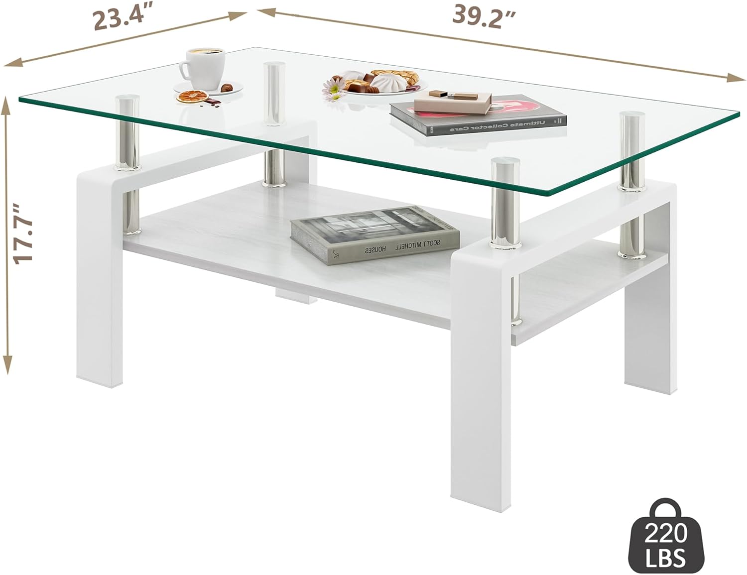 - Spacious and Sturdy Design: Measuring 39.2"L x 23.4"W x 17.7"H, load-bearing capacity of 220 lbs, this glass coffee table offers ample space and reliable support, making it ideal for any living room or office.