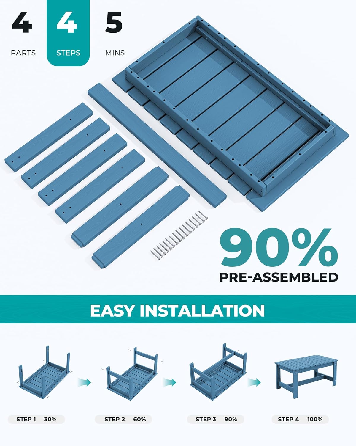 - Maintenance-Free Living: The SERWALL HDPE coffee table is designed for life's simplicity. It's waterproof, fade-resistant, and requires no painting or staining—just a quick soap and water rinse to keep it looking fresh.