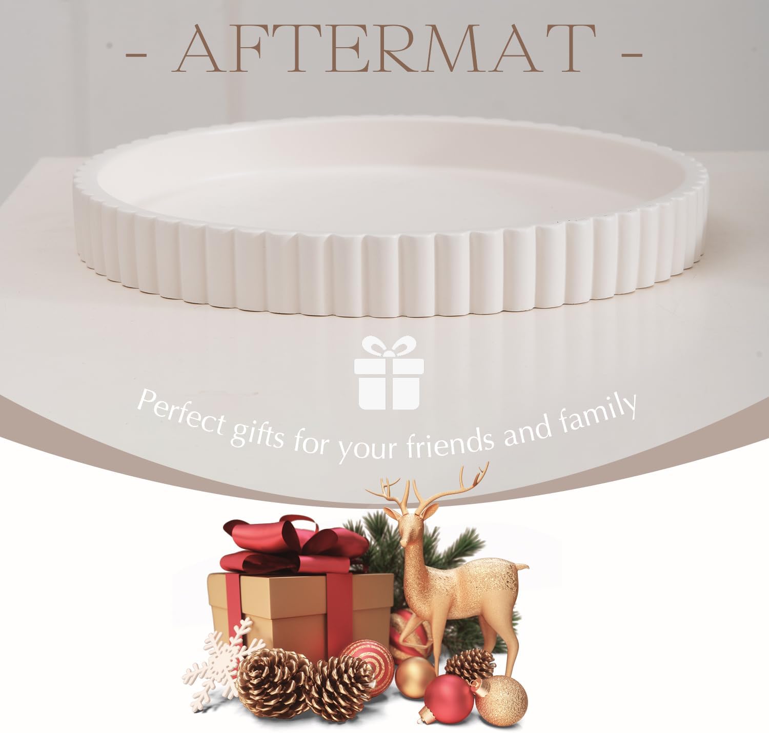 Decorative Tray for Coffee Table, Living Room, Side Table, 11" White Round Concrete Home Decor Serving Trays for Accent Table, Console Table