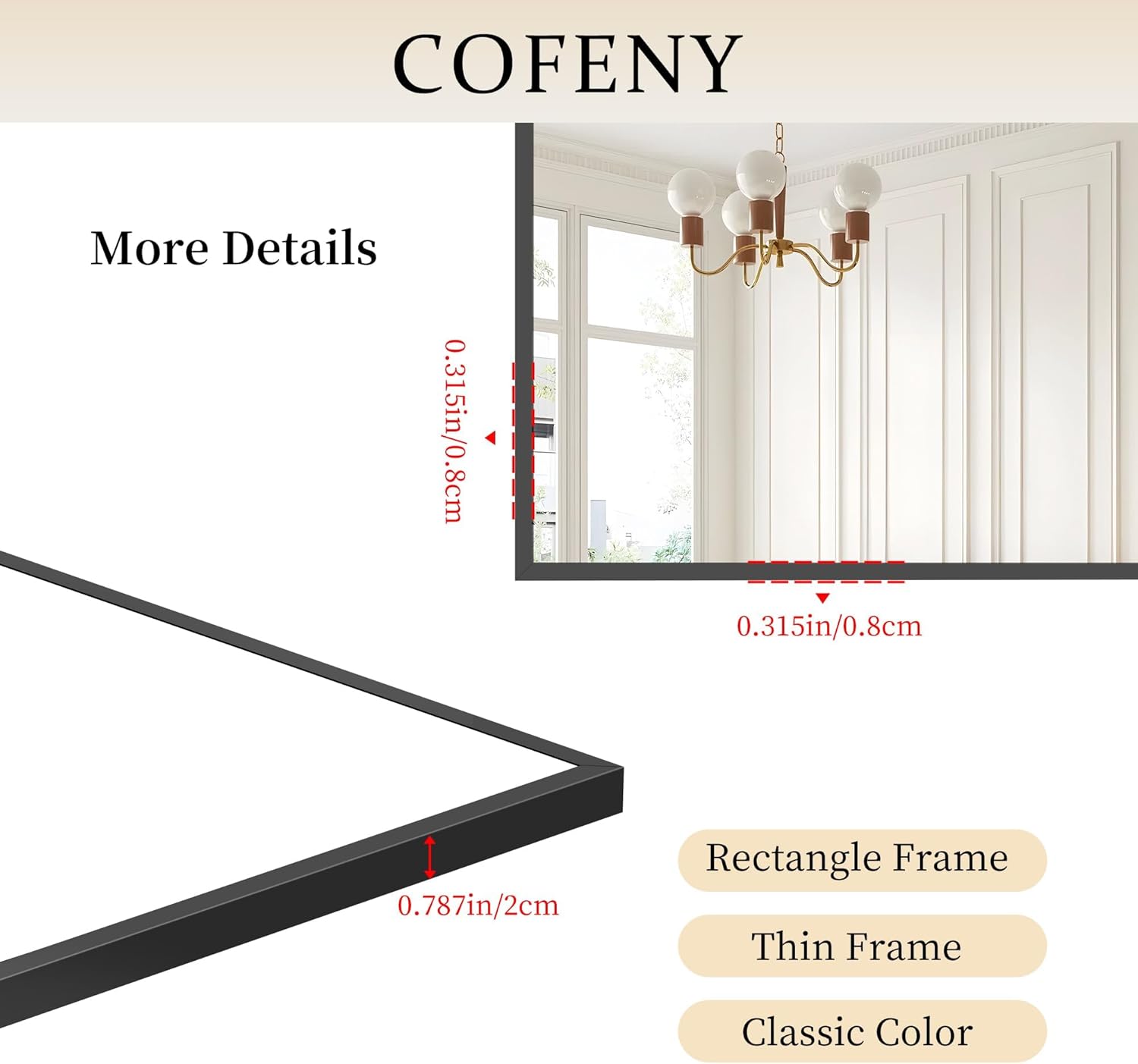 - HD MIRROR&NO DISTORION: COFENY 36X72 mirror is made of premium glass, unbreakable and the reflection is clear and natural,high definition and non distorion,which can give you the most realistic visual enjoymentmeet and long-lasting use need.