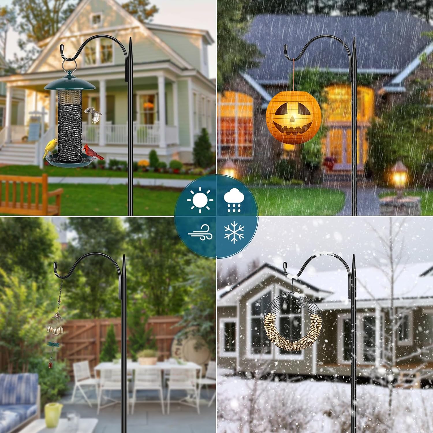 - Versatility: Multi-purpose lantern hooks can also be used for hanging flower pots, wind chimes, holiday decorations and bird feeders, which can perfectly decorate various scenarios, like patios, weddings, and so on