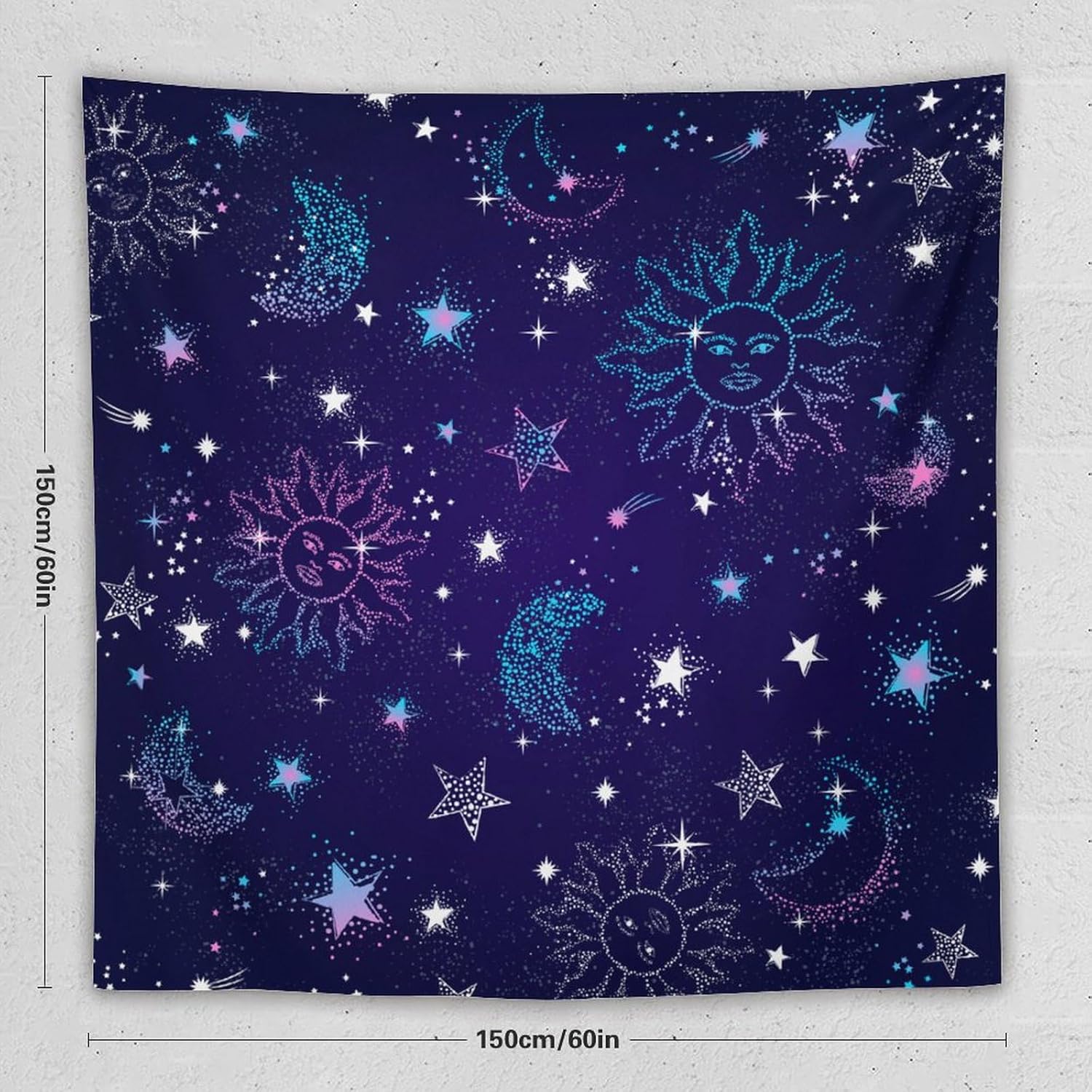 HZOHNAGO Boho Sun Moon Tapestry Purple Blue Sun Stars Galaxy Pattern Printed Wall Tapestry Wall Hanging for Bedroom Living Room Dorm 60" W x 60" H