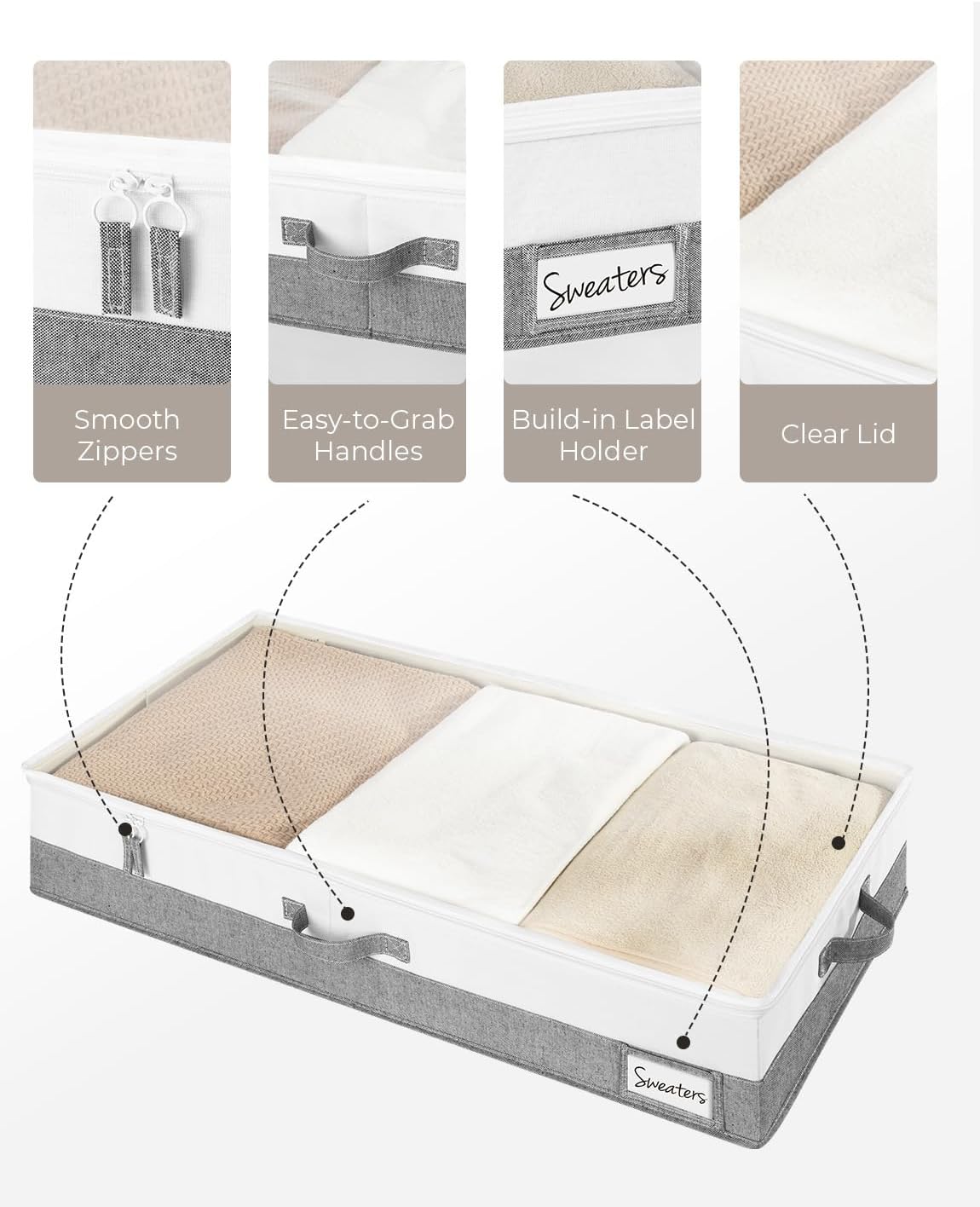 - Underbed storage organizers feature a big transparent lid and a label holder.