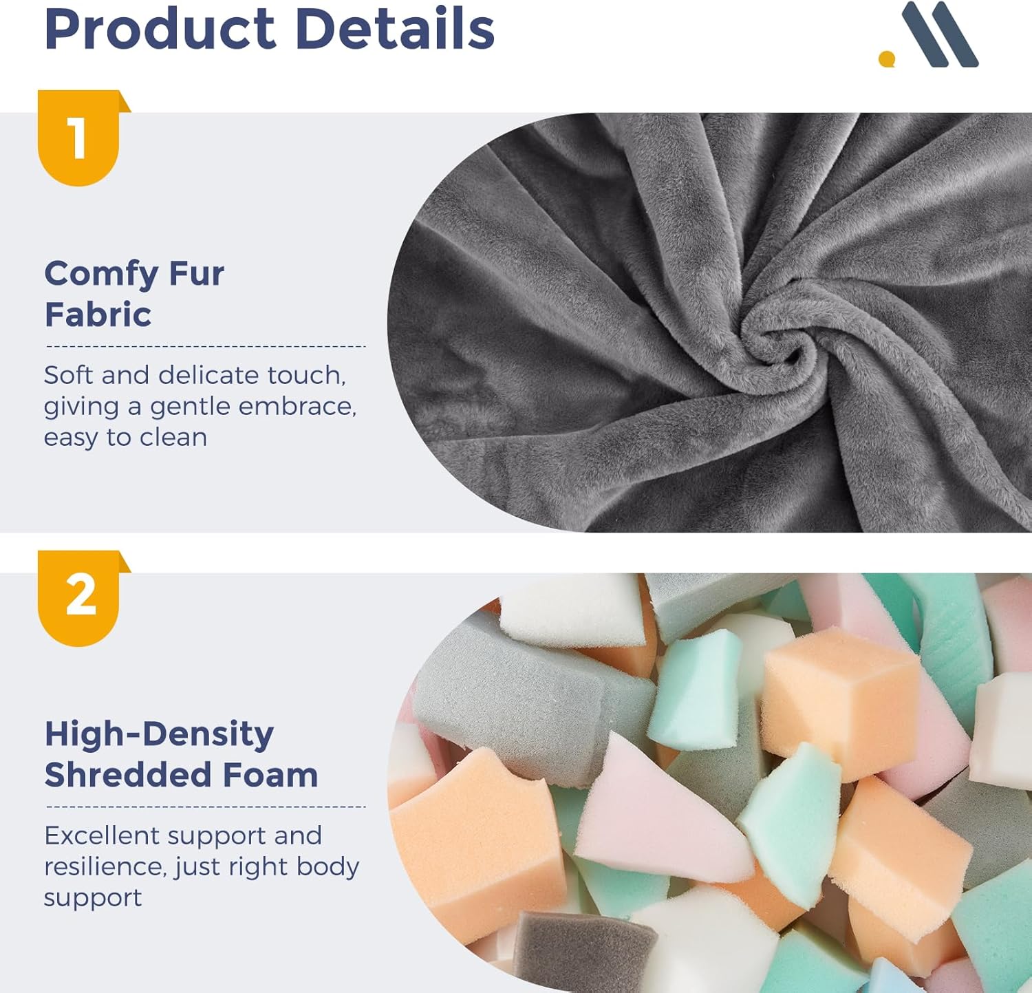 - Material Faux Fur : Fill Material Shredded Foam