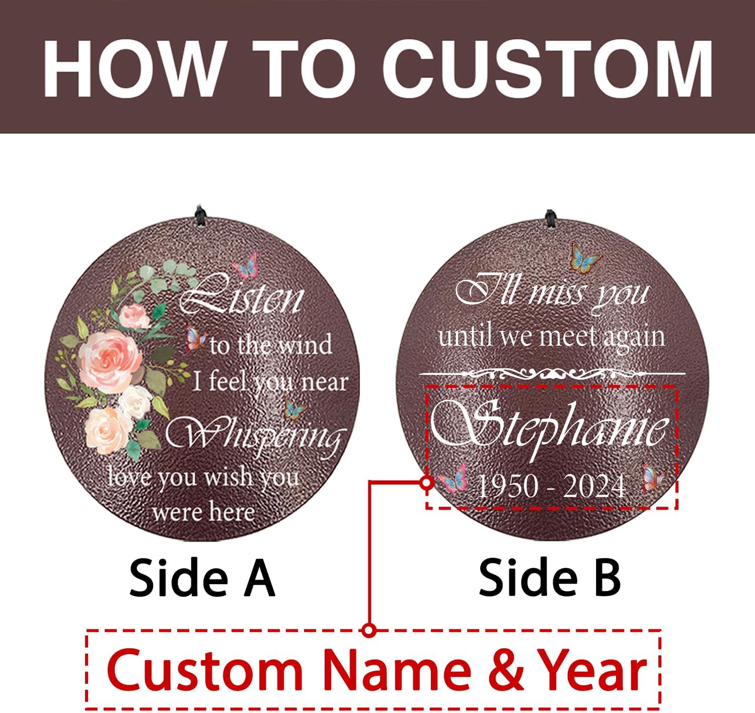 - A BETTER CHOICE THAN FLOWERS: Personalized memorial wind chimes, customized with his/her name and date to keep love in our hearts forever. Our wind chimes are tuned by wind chime experts to crash out beautiful music, a better tribute gift than flowers.