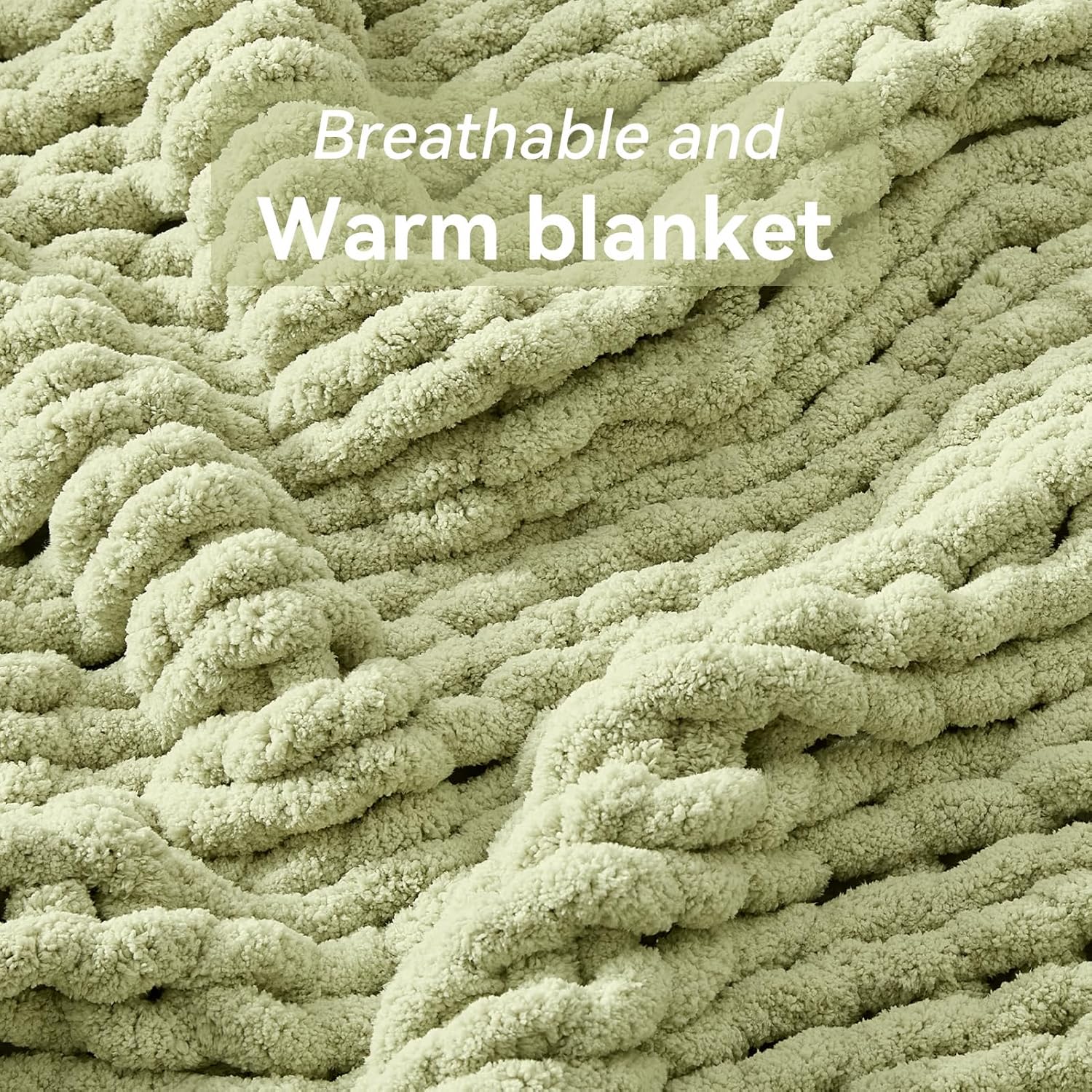 Chunky Knit Throw Blanket, 30''*40'' Knitted Throw Chenille Yarn for Bed Couch, Handmade Light Green Crochet Big Thick Blanket, Machine Washable Cute Comfy Blanket for Home Decor
