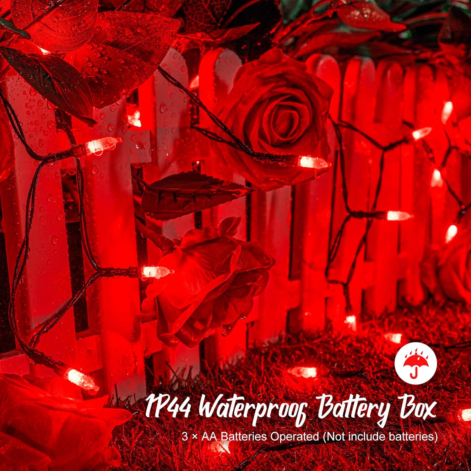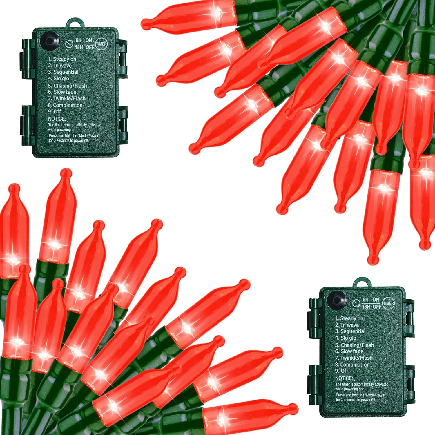 Battery Operated Red String Lights, 2 Pack 18 Feet 50 LED Clear Mini String Lights with 8 Modes Waterproof Tree Lights for Xmas Outdoor Indoor Holiday Party Garden Decor