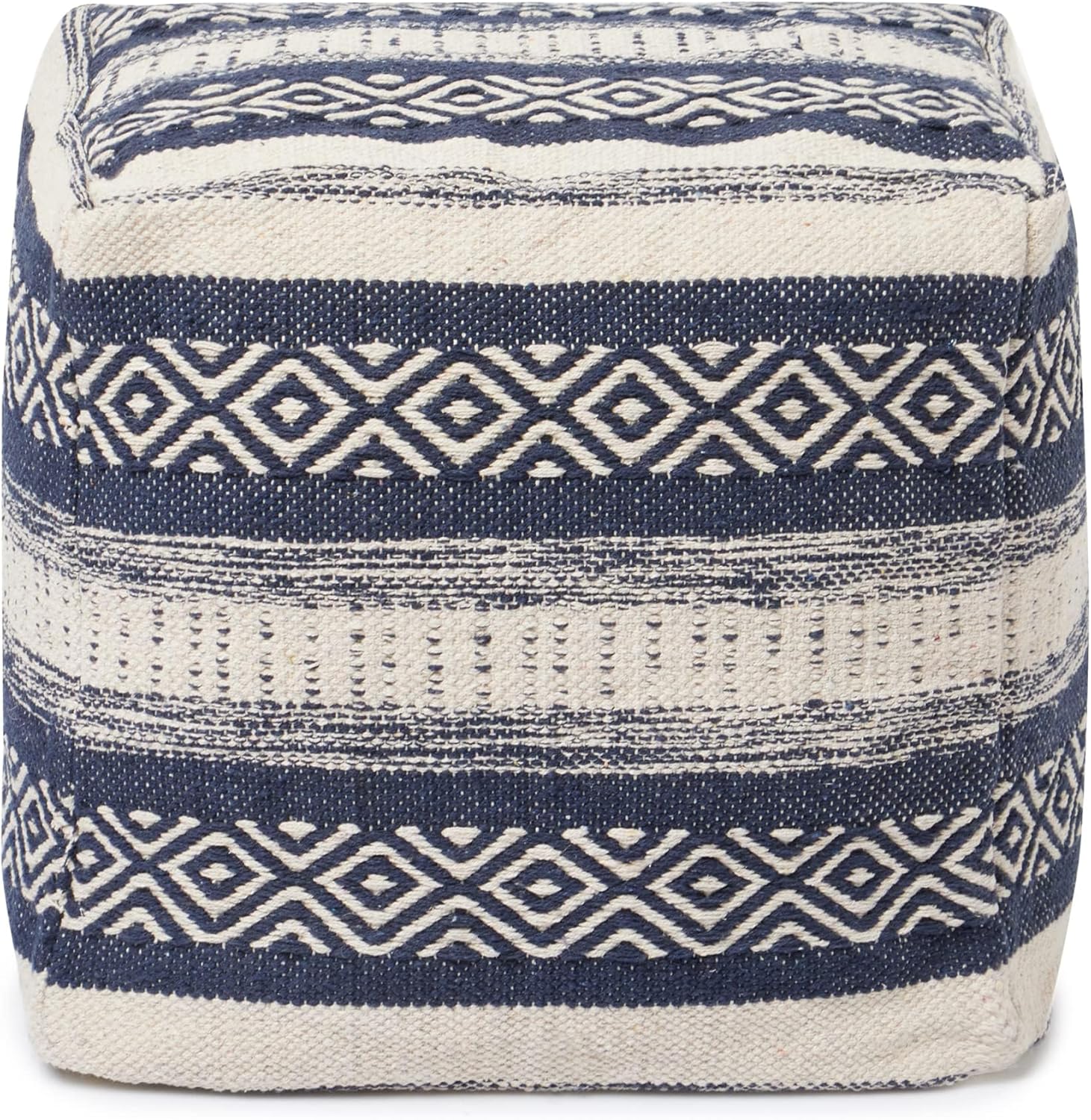 REDEARTH · Tufted Pouf Ottoman with Filler Textured Storage Cube Bean Bag Pouffe Footrest for Living Room, Bedroom, Nursery, Home Decor; 100% Cotton (17.5"X17.5"X17.5", Indigo Impressions)