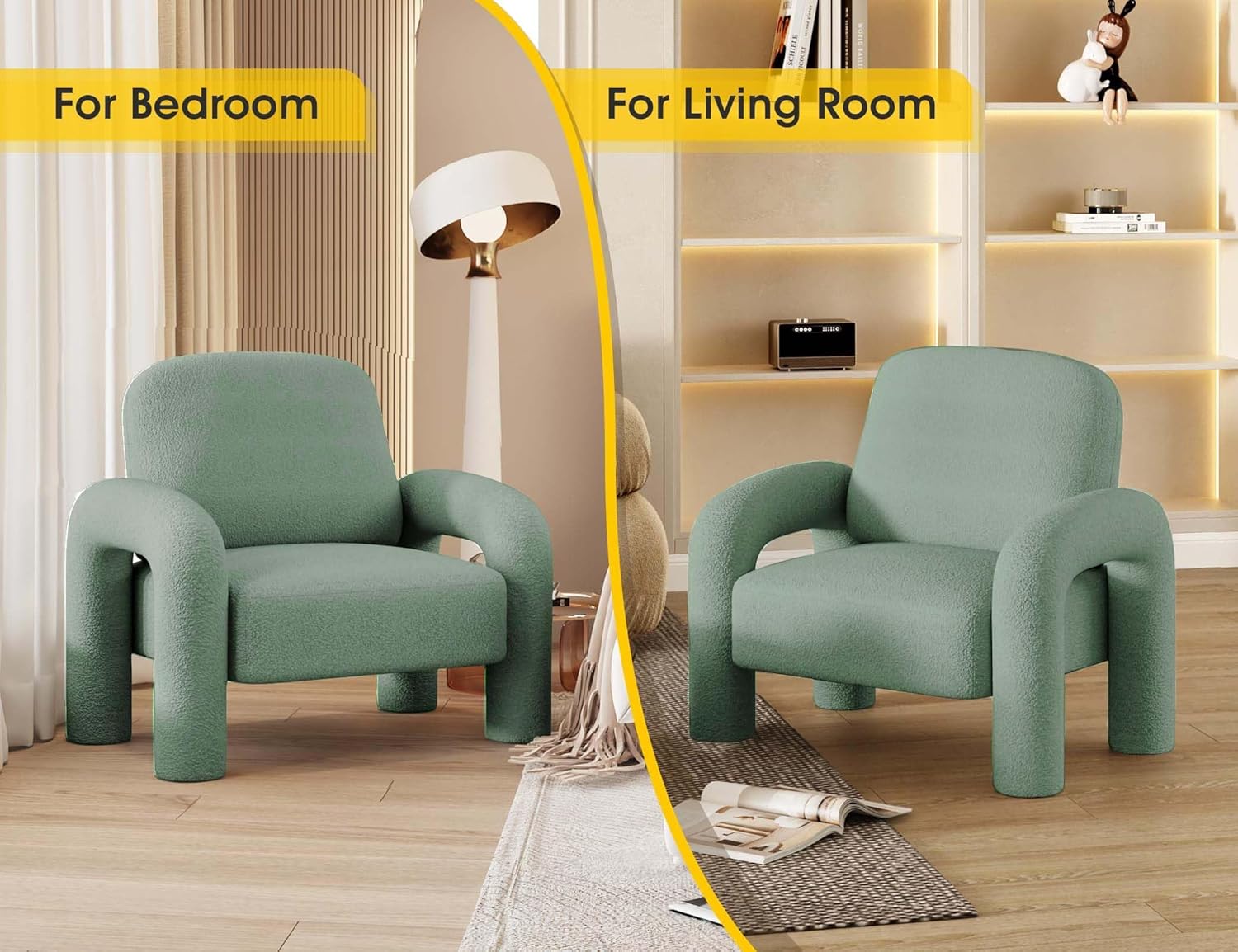 - [Unique & Stylish] This single sofa Modern casual and unique style fits perfectly with minimalist decor and furniture. Add warmth to the whole space, suitable for any living room, bedroom, office or corner and other various scenes. Whether it's a living room sofa chair, bedroom chair, club chair or lounge chair, multiple uses are available.