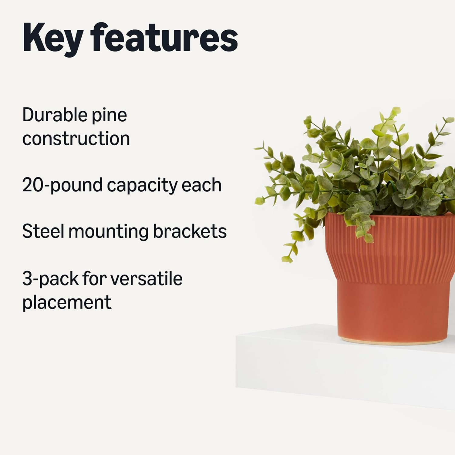Amazon Basics Wood Floating Wall Shelves, Pack of 3, White, 15.8" x 5" x 1.8"