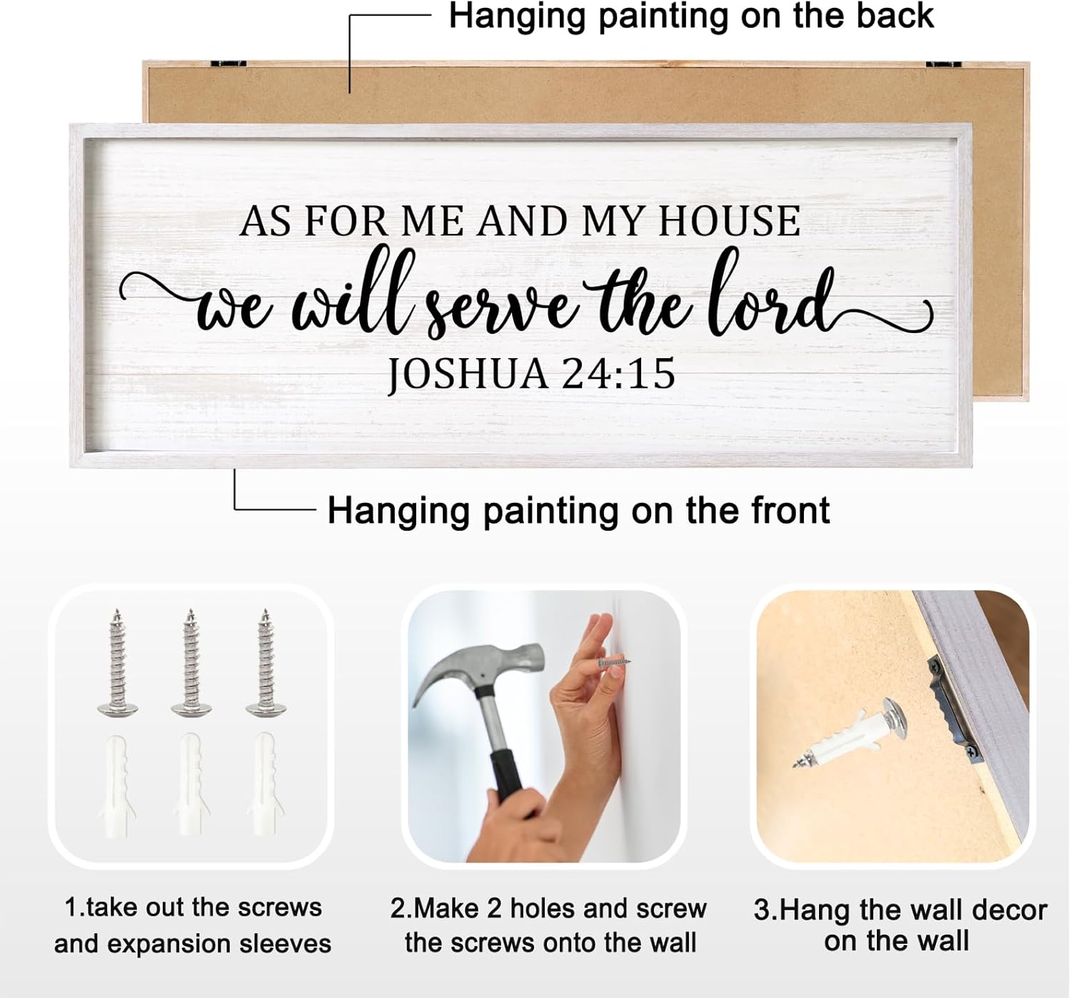 - 【Encouraging Words】JOSHUA 24:15 As For Me And My House large hanging wood sign adopt minimalist letters on the white background, showing constant reminder of faith and devotion in any setting and you passion for god, adding a touch of elegant, and classic beauty to your space and giving people a calming feeling.