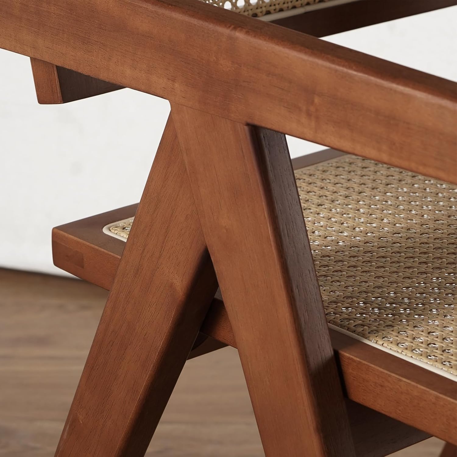 Rattan Walnut Mid Century Modern Dining Chairs Set of 4, Comfy Armchairs with Cane Back, Outdoor Kitchen Chairs for Multiple Rooms