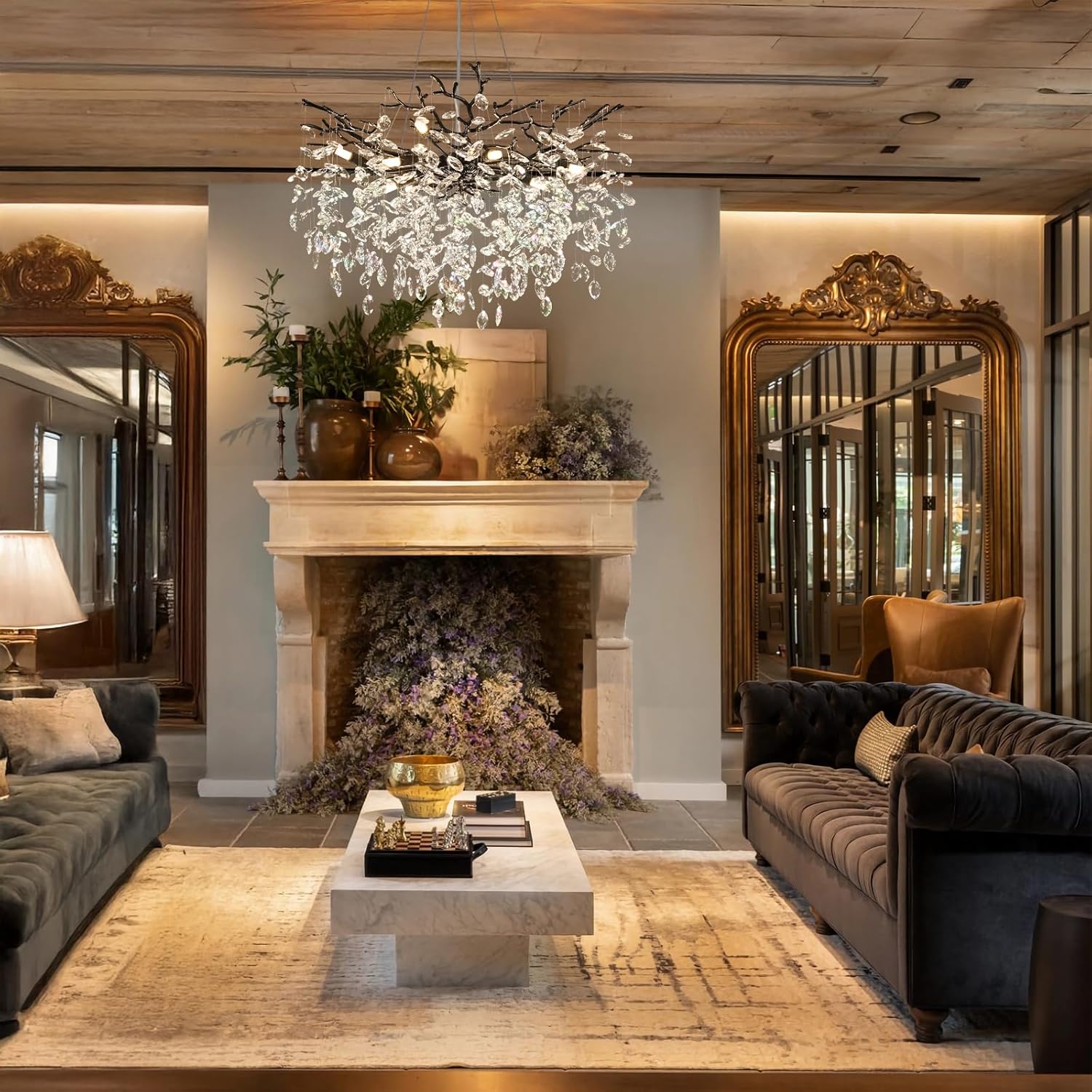 - Modern Black Crystal Tree Branch Chandelier: The Kvtinmty Crystal Chandelier is expertly crafted with elegant black decorative branches and stunning top-grade K9 transparent crystals, evoking purity and romance. The chandelier's frame is made of aerospace-grade aluminum alloy for durability and strength. With a lifespan exceeding 100,000 hours, this crystal chandelier offers long-lasting brilliance and beauty.
