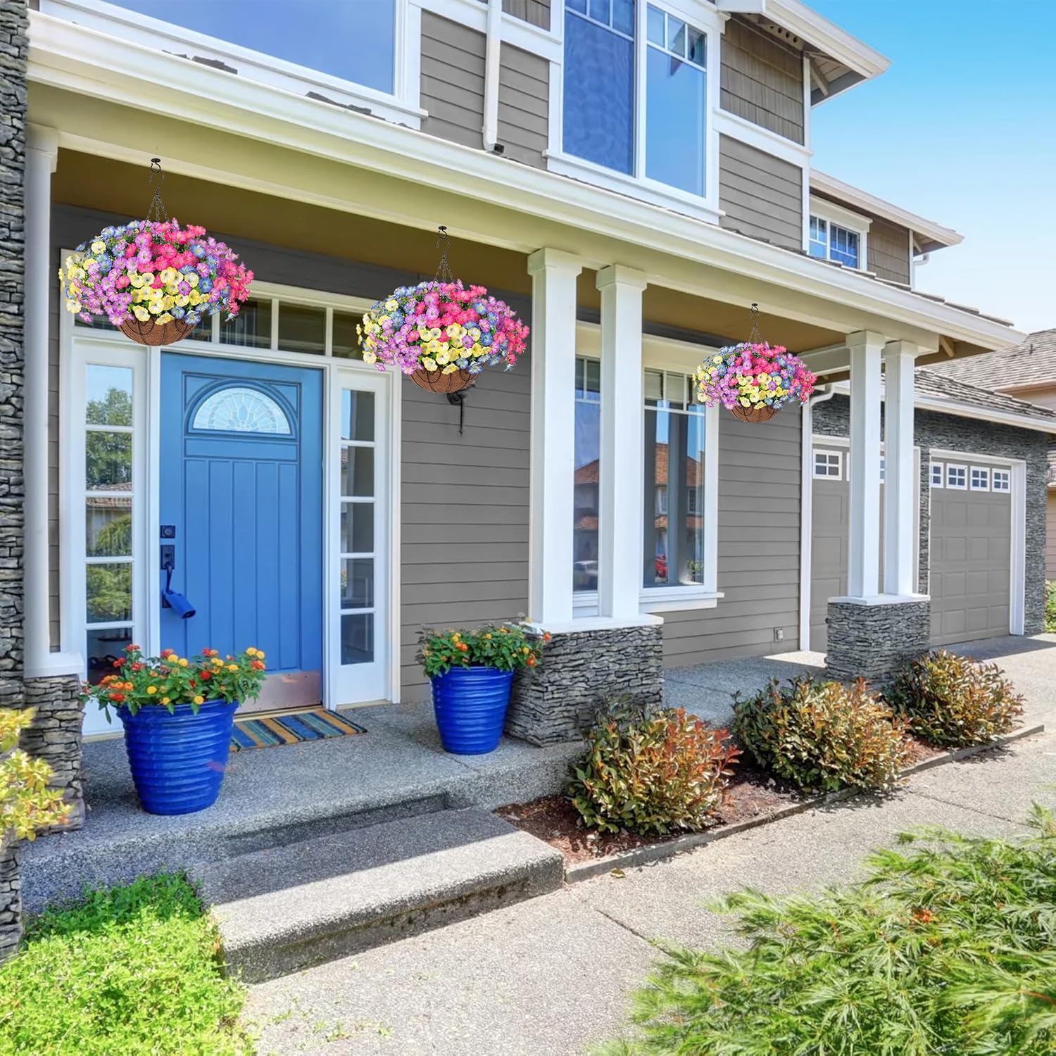 - 🟢 Durable and UV Weather-Resistant: The looking real fake hanging plants are made of high quality silk cloth and plastic, which are designed to withstand outdoor elements, and UV and all weather resistant, so they won't fade or deteriorate in the sunshine.