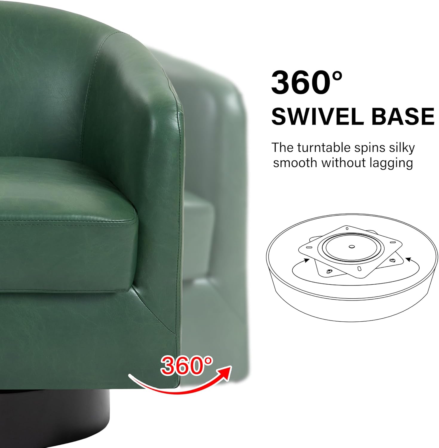 Swivel Barrel Accent Chair, Modern Round Faux Leather Arm Chair for Living Room, Bedroom, Comfy Club Reading Chairs for Adults(Faux Leather, Green, Set of 4)