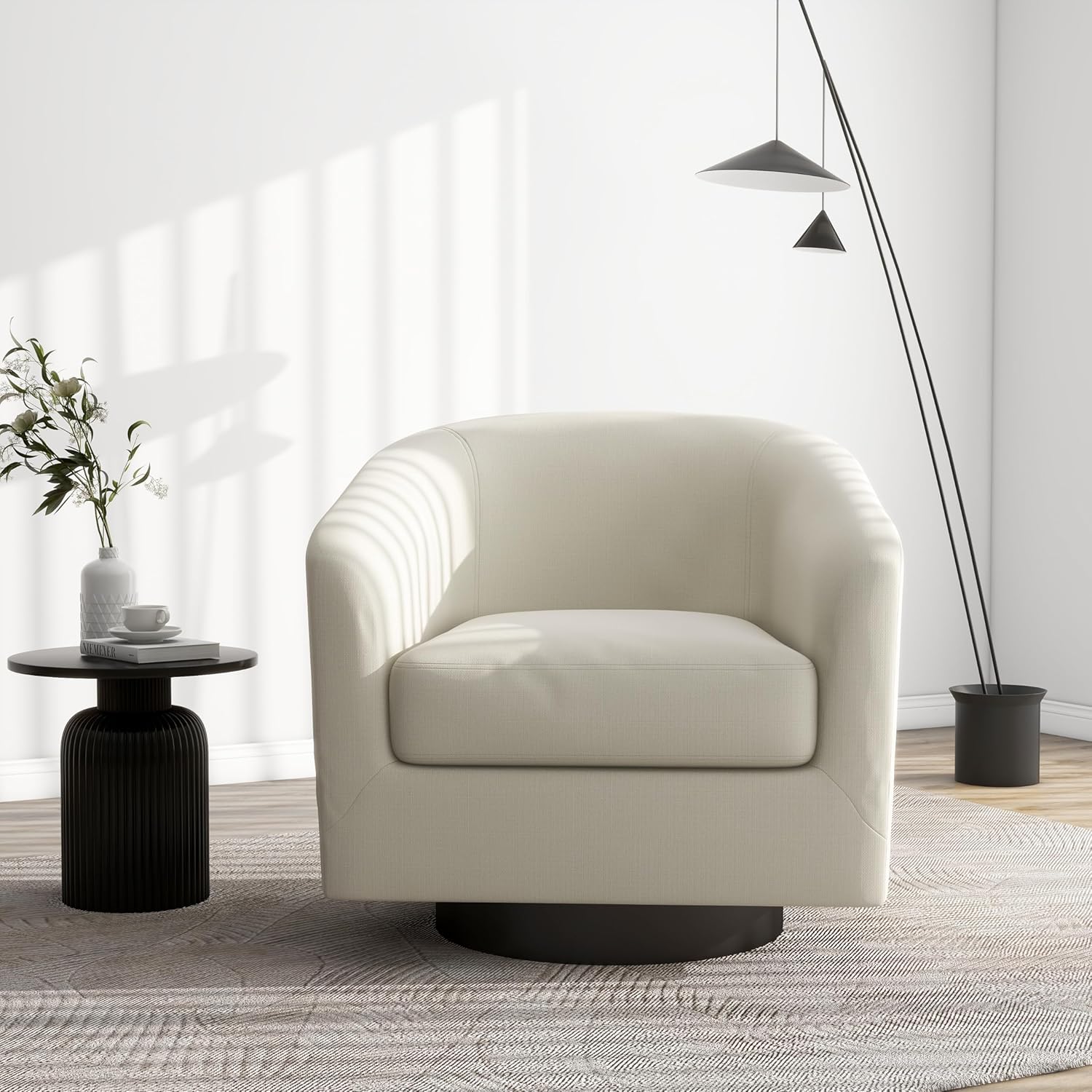 Swivel Barrel Accent Chair, Modern Round Linen Arm Chair for Living Room, Bedroom, Comfy Club Reading Chairs for Adults(Linen Fabric, Beige, Set of 4