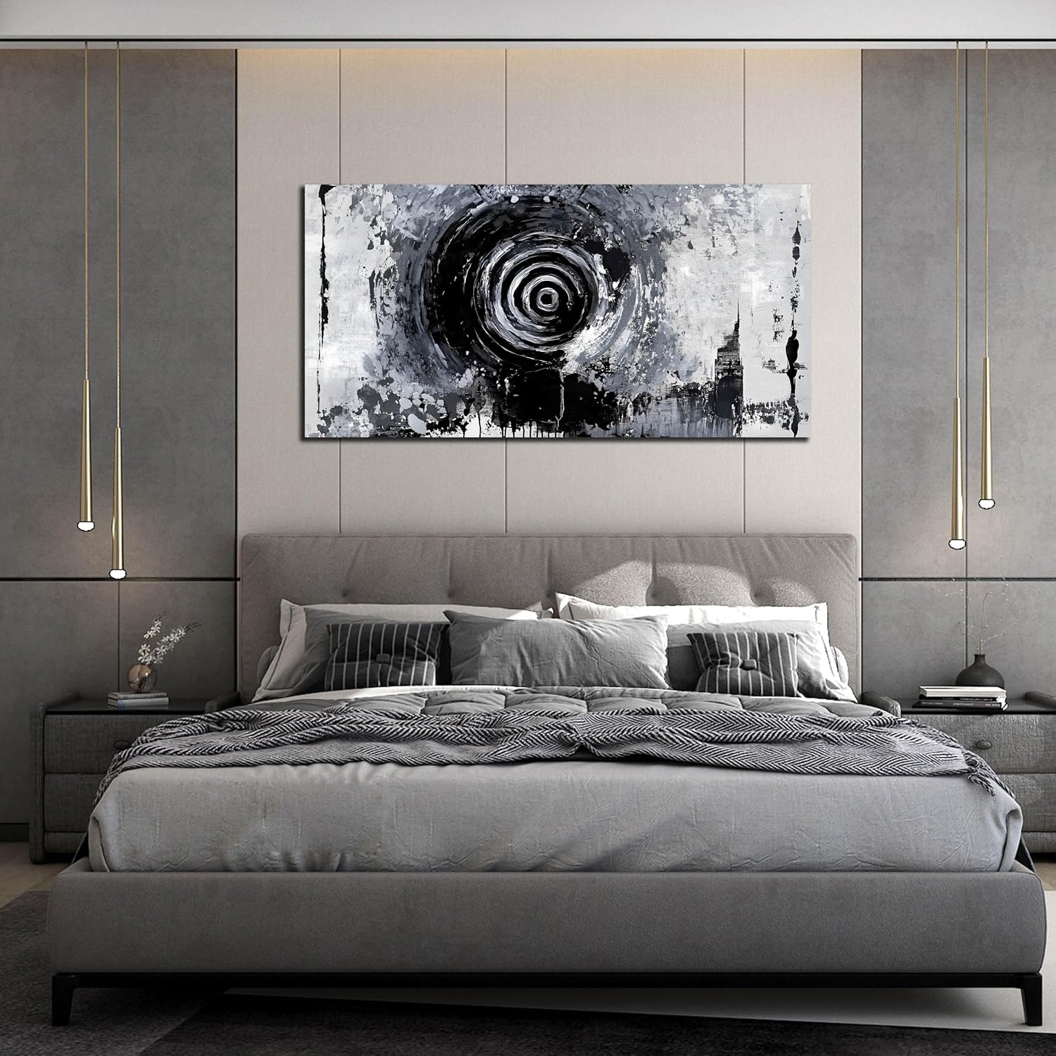 - EASY TO HANG: Each panel of canvas prints already stretched on solid wooden frames, gallery wrapped, lightweight,ready to hang. The side margins are also printed to create a particularly decorative effect Abstract large wall art for living room ,black and white canvas wall art for office Added color and fun to your bedroom, living room,office, dormitory or apartment.