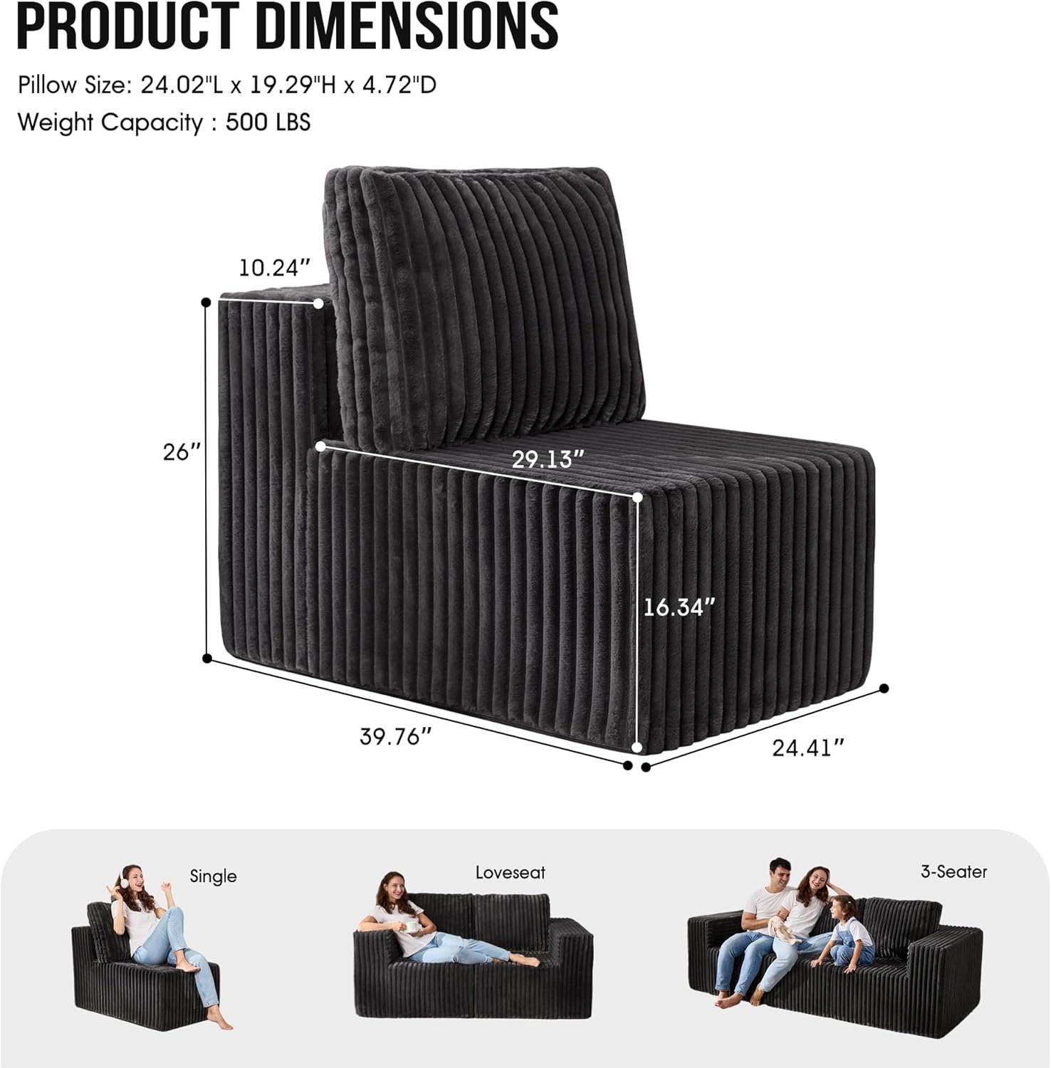 - Seat Depth : 29.13 inches