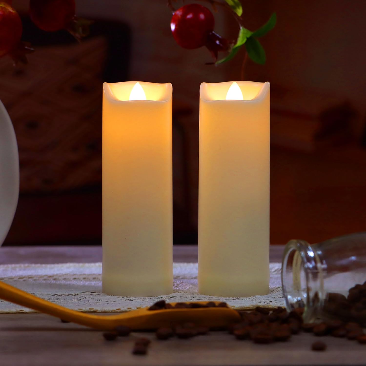- For outdoor and indoor use. These plastic battery candles are waterproof and designed for outdoor use to decorate your hurricane lantern, garden, yard, patio, swimming pool, or an outdoor activity such as a BBQ party. Of course, the resin pillar candle can be used indoor to decorate your fireplace and rooms as well. Flameless candle creates a warm, peace, and romantic ambiance.