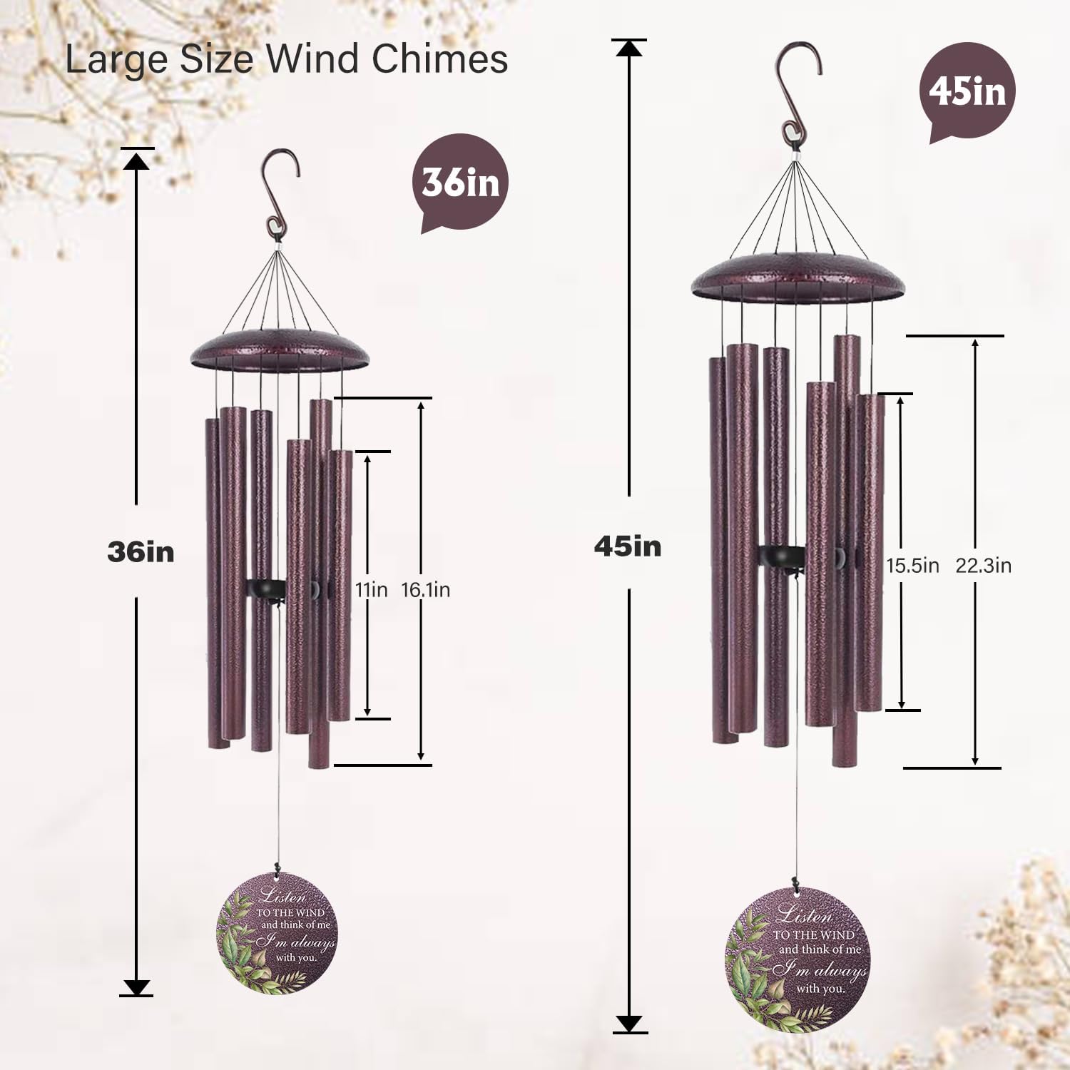 - LARGE OUTDOOR WIND CHIMES: Our large wind is available in 36" and 45" sizes. They are made of bronze metal with a waterproof and anti-corrosion coating and can be hung in the yard for a long time. They can easily decorate the backyard, garden, window, terrace, or living room.