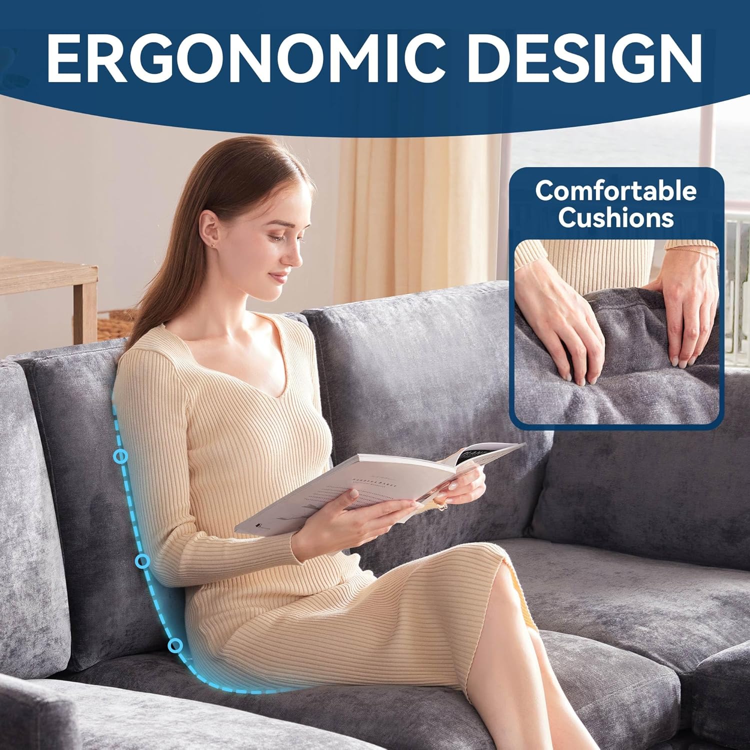- Chenille Fabric - Wrapped in chenille fabric, this sectional couch combines velvety softness with everyday durability. The dense, textured weave resists pilling while maintaining its plush feel, and its naturally breathable properties keep you comfortable in any season.