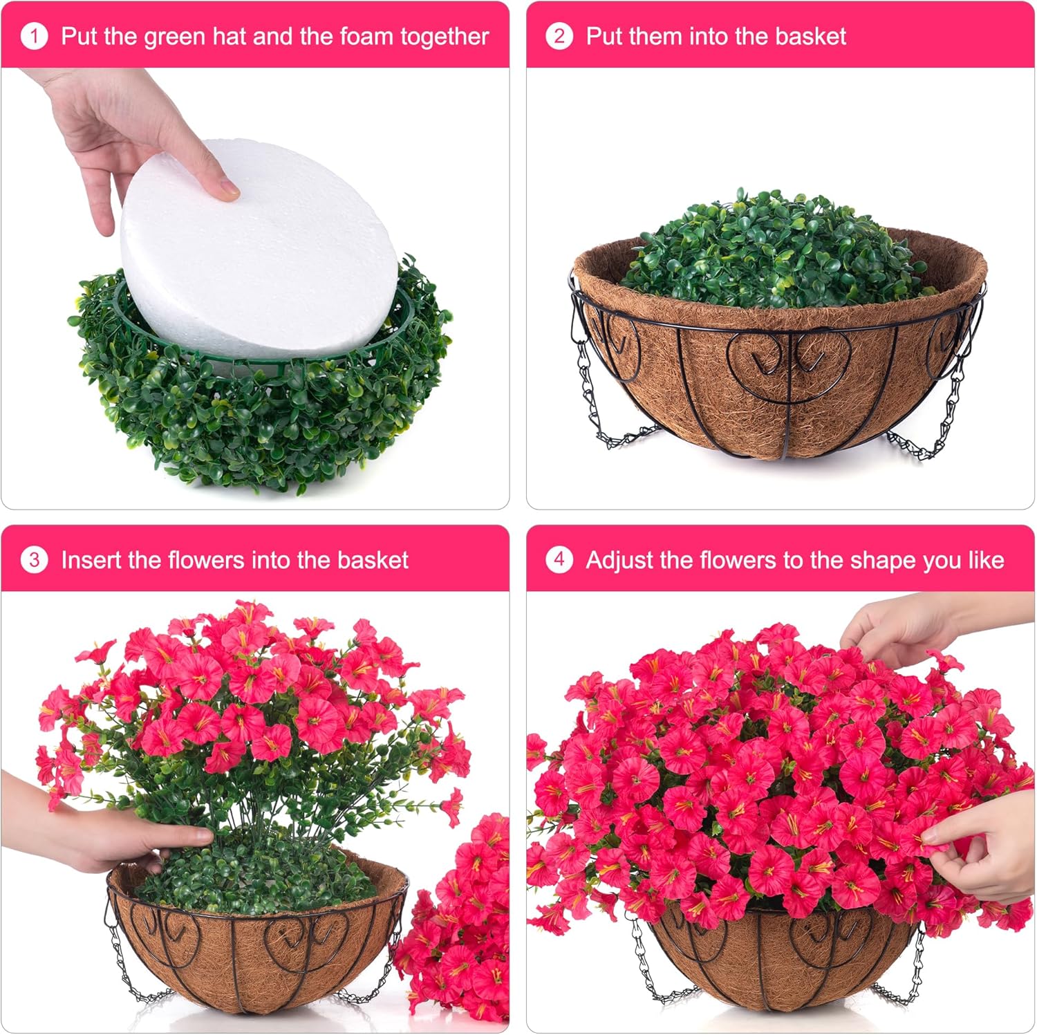 - 🟢 Artificial Hanging Morning Glory Flowers Basket: Package include 12 bundles Realistic silk morning glory match with green eucalyptus leaves, 1 Hanging Basket with chain, 1 foam, 1 green hat. Enjoy vibrant blooms year-round, regardless of the season or weather conditions.