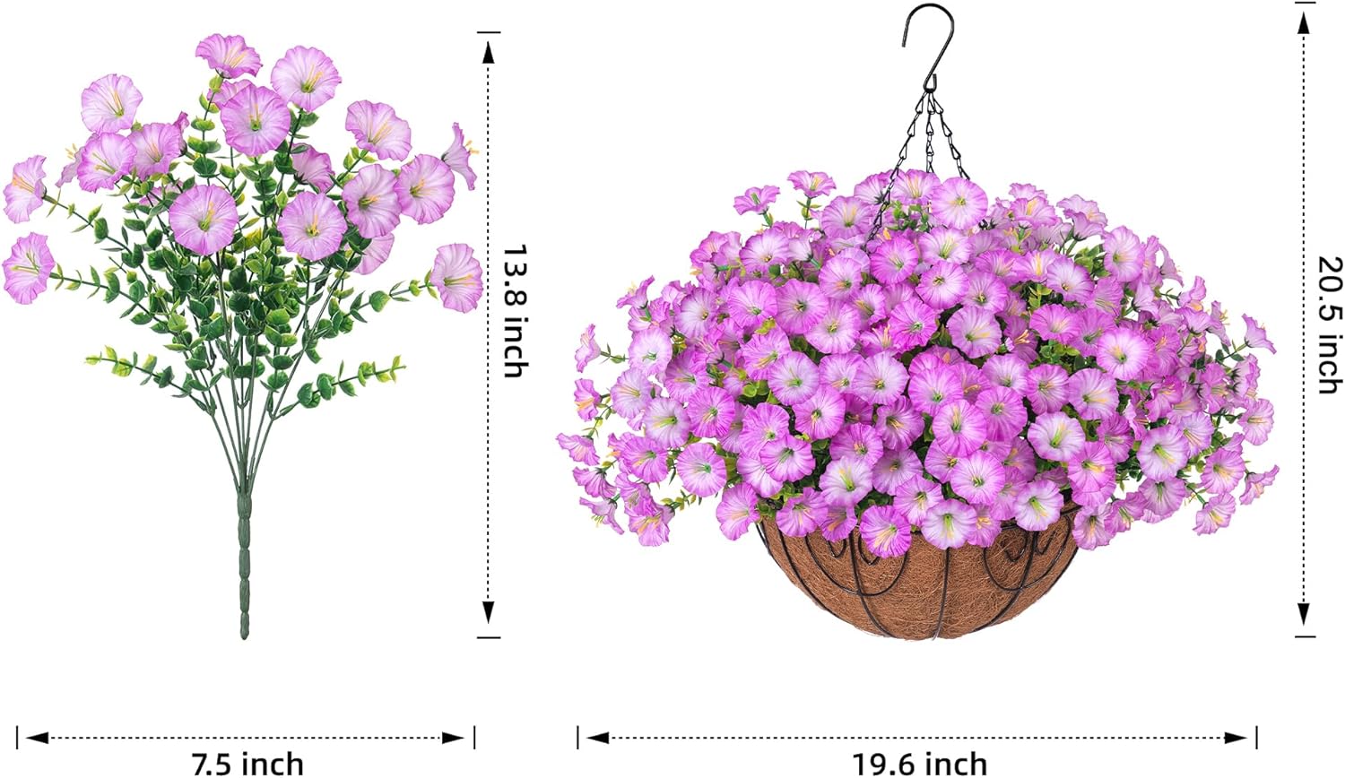 - 🟢 Artificial Hanging Morning Glory Flowers Basket: Package include 12 bundles Realistic silk morning glory match with green eucalyptus leaves, 1 Hanging Basket with chain, 1 foam, 1 green hat. Enjoy vibrant blooms year-round, regardless of the season or weather conditions.