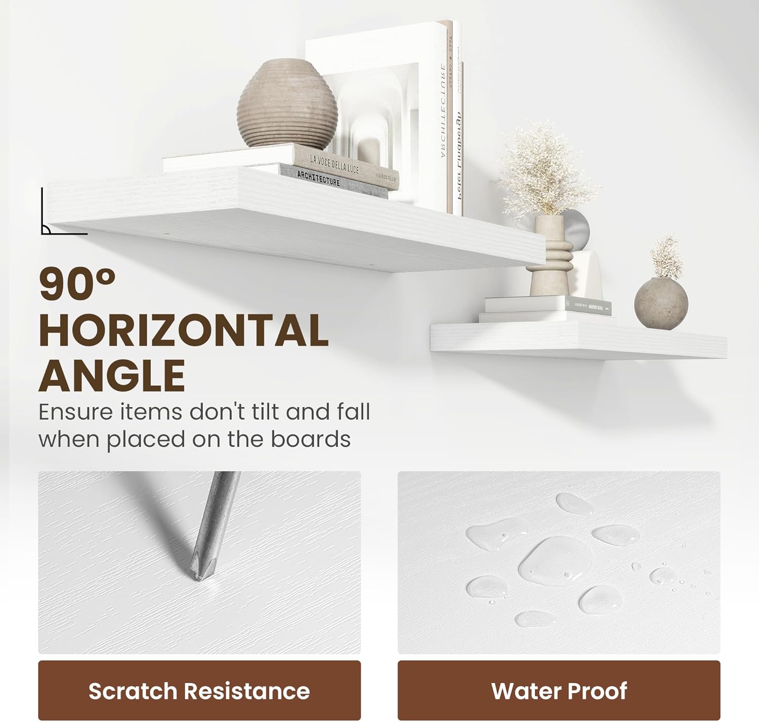 - 【Premium Quality Construction】Crafted from high-grade engineered wood with an invisible one-piece bracket, these floating shelves offer a robust and sleek design. The rustic wooden grain finish not only adds a touch of elegance but also infuses warmth into any room, making them a perfect fit for both modern and traditional interiors.