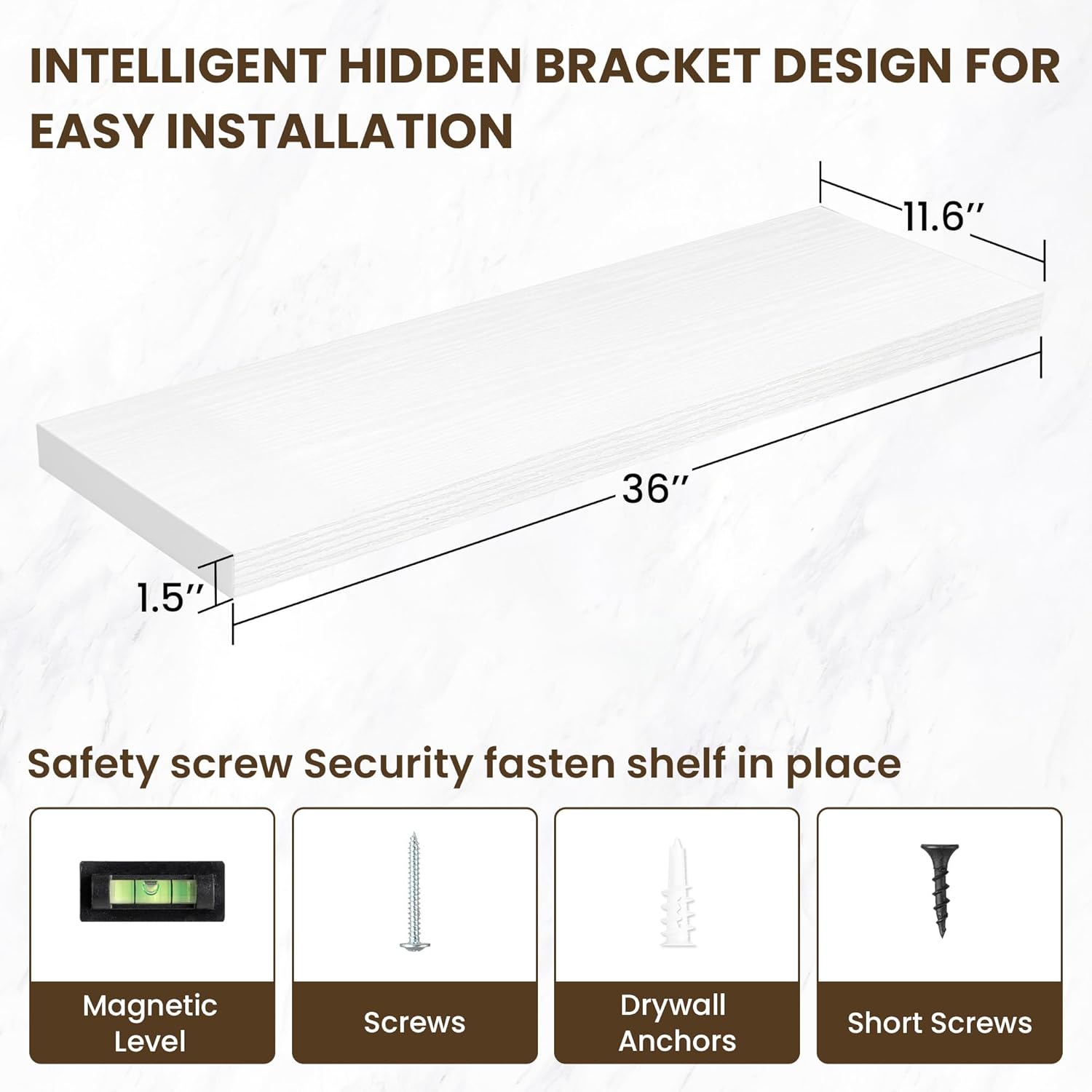 - 【Easy Installation】Designed with user convenience in mind, these shelves come with all necessary mounting hardware and clear instructions. You can have them up and ready to use in less than 5 minutes. Plus, our customer service is always ready to assist with any queries or concerns, ensuring a hassle-free experience