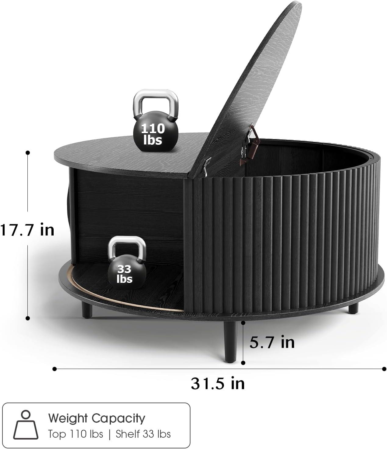 - Product Dimensions : 31.5"D x 31.5"W x 17.7"H