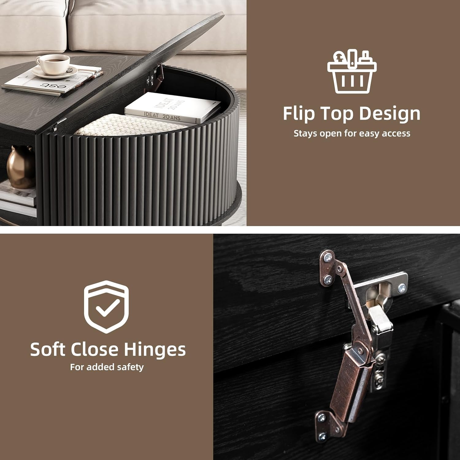 - Stylish and Practical: The round coffee table features lift top design,allowing you to work,write or dine comfortably on the sofa.Its mid-century modern style adds a retro feel to any space