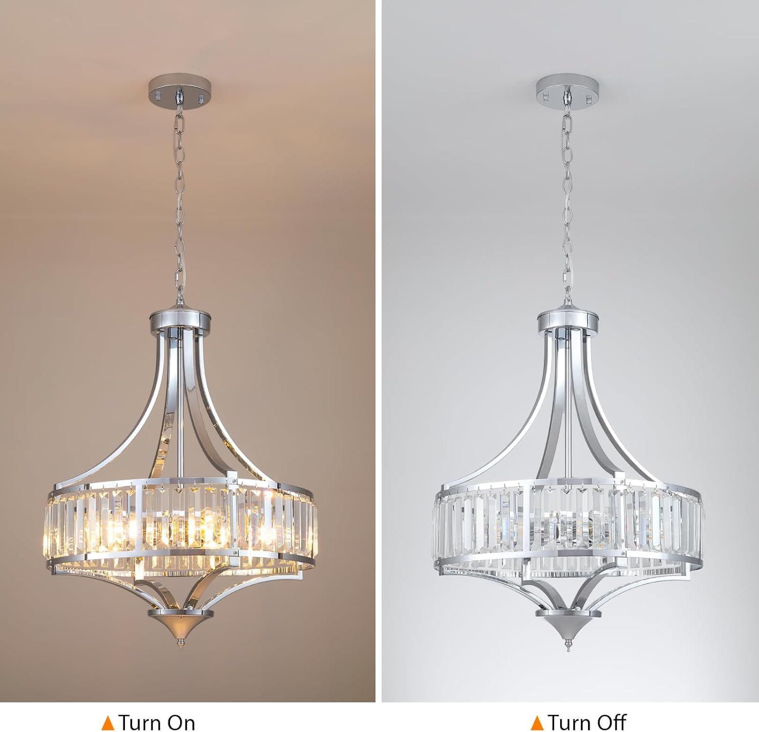 - 【𝐒𝐥𝐞𝐞𝐤 𝐌𝐨𝐝𝐞𝐫𝐧 𝐃𝐞𝐬𝐢𝐠𝐧 𝐂𝐫𝐲𝐬𝐭𝐚𝐥 𝐂𝐡𝐚𝐧𝐝𝐞𝐥𝐢𝐞𝐫】20-inch chrome crystal chandelier combines contemporary sophistication and classic charm. Cone crystal accents refract light beautifully, creating dazzling reflections for any room. Polished chrome ensures seamless integration with modern, farmhouse, or industrial décor.