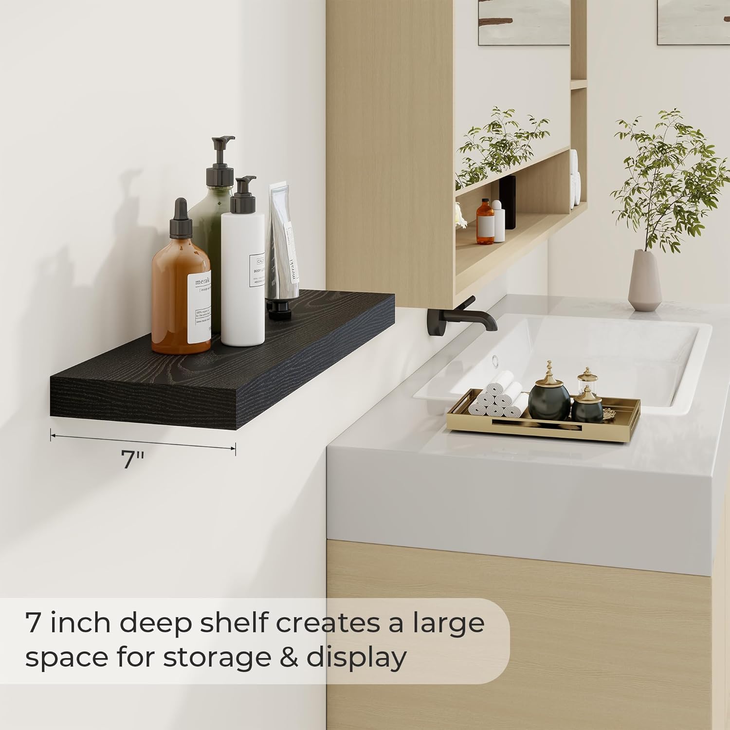 - Modern and rustic style: Our 6.7-inch deep floating shelves blend modern rustic with practical functionality, offering a seamless solution to elevate any room. Crafted to complement a wide variety of wall types and interior styles, these shelves are perfect for displaying treasured décor or optimizing storage in your home.