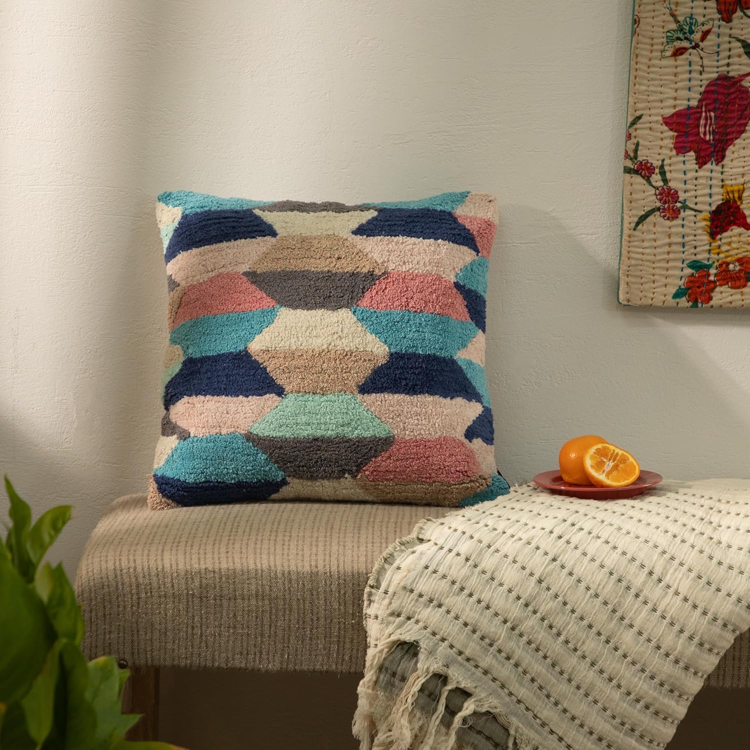 Tuffting Embroidery Decorative Throw Pillow Cover, 18 x 18 inches (Multi Geometrical)