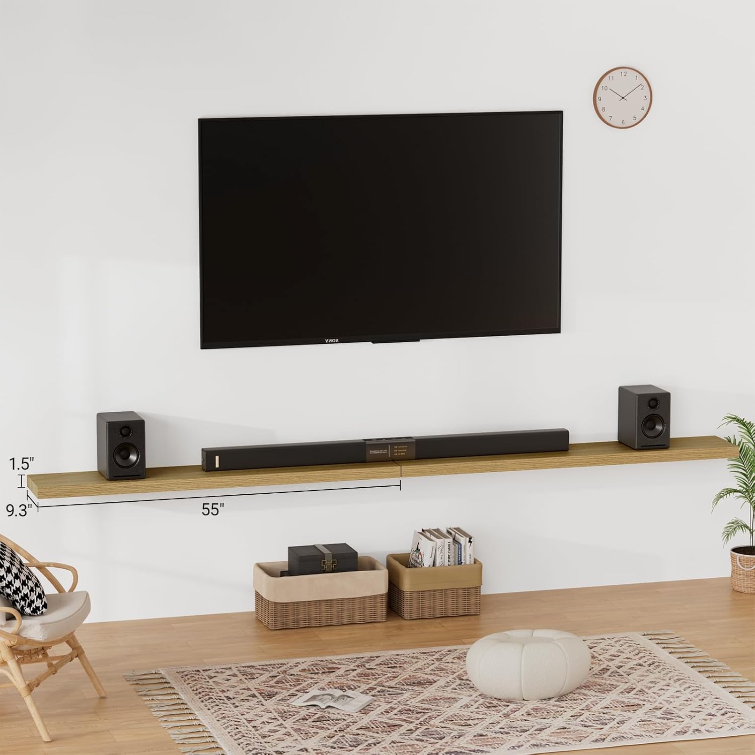 - 【Longer Design】Our pretty white oak floating shelves are 55"W x 9.3"D x 1.5"H.Our floating shelves oak is longer than traditional designs and can hold more items.The oak floating shelves optimize wall space,helping organize essentials without taking up floor space in your home.