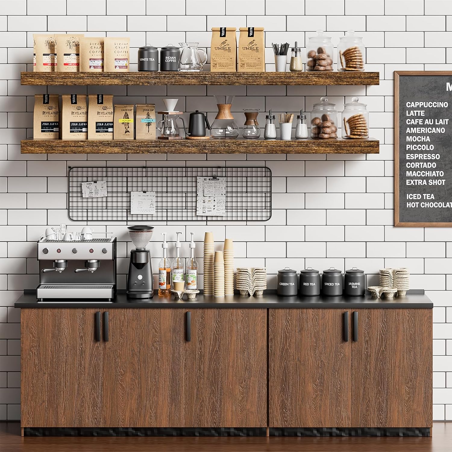 - 【Longer Design】Our pretty wall shelves are 48"W x 9.3"D x 1.5"H.Our brown floating shelves is longer than traditional designs and can hold more items.The rustic brown floating shelves optimize wall space,helping organize essentials without taking up floor space in your home.