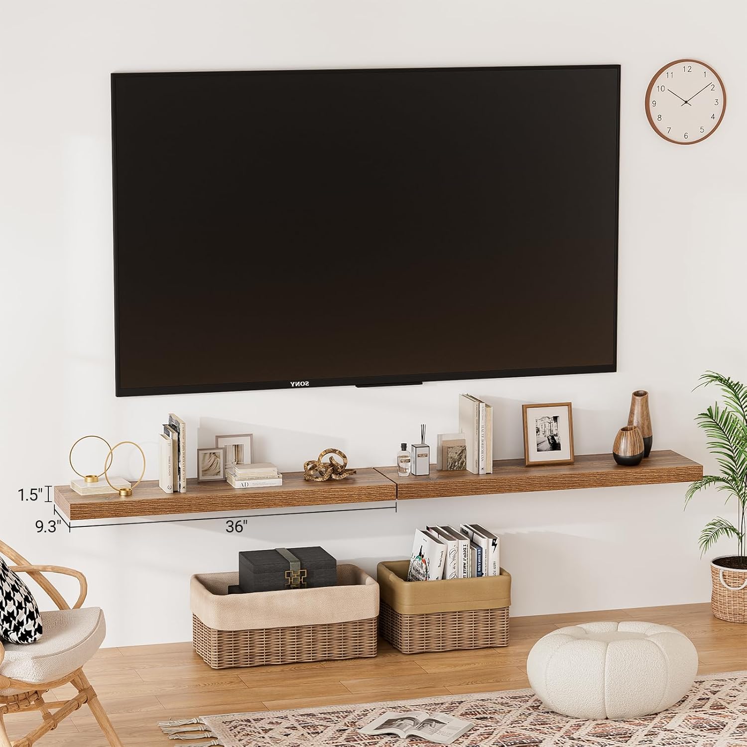 - 【Longer Design】Our pretty 36 inch wall shelves are 36"W x 9.3"D x 1.5"H.Our wall shelf is longer than traditional designs and can hold more items.The 36 inch floating shelf optimize wall space,helping organize essentials without taking up floor space in your home.