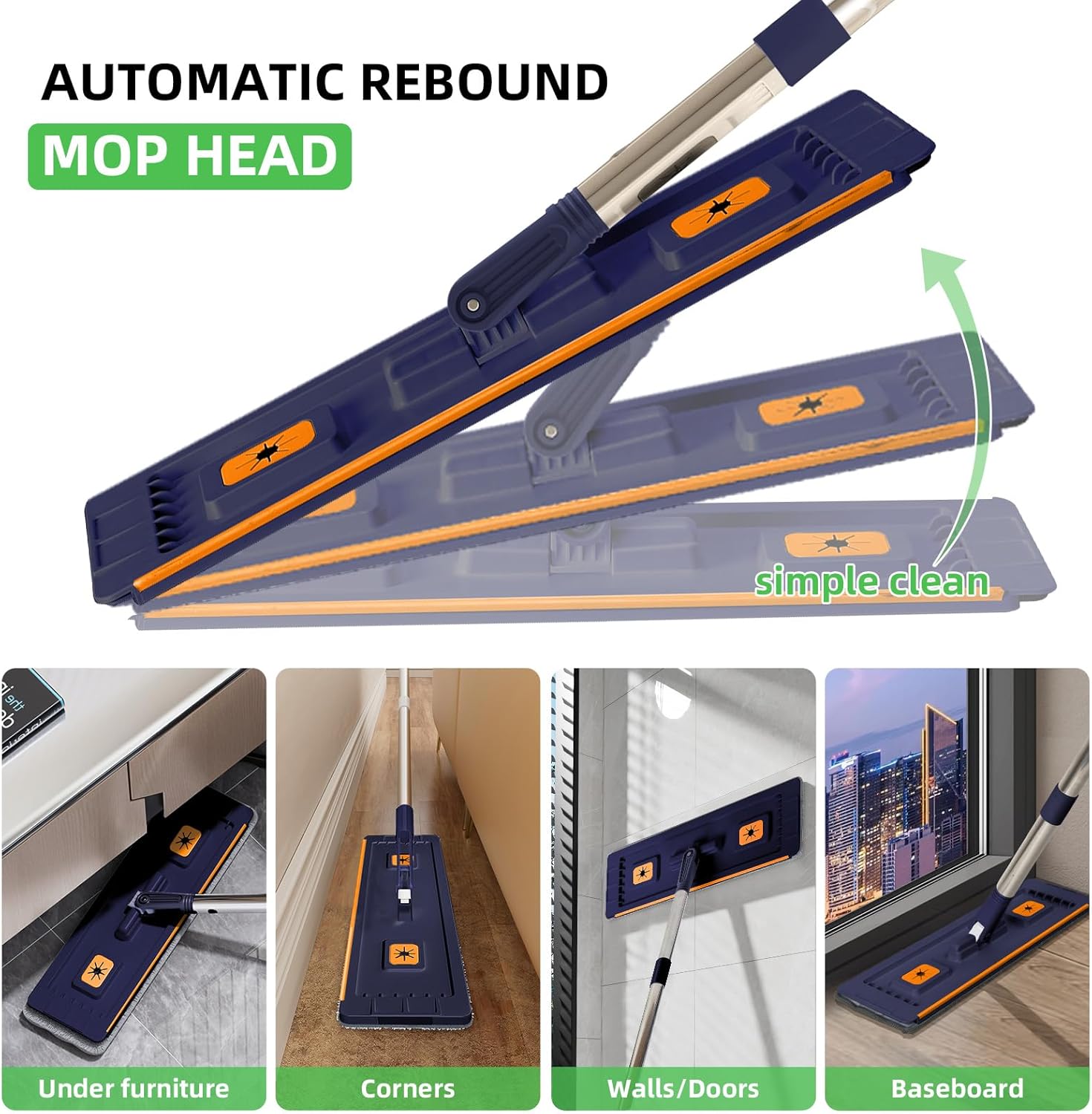 - Space-Saving Design & Additional Features: The narrow, compact bucket fits into tight spaces like behind doors or in narrow gaps. Additionally, the mop features two extra holes for cleaning solutions and is compatible with paper towels or thin pads. The automatic rebound mop head and soft scraper make cleaning in bathrooms or other wet areas easy.