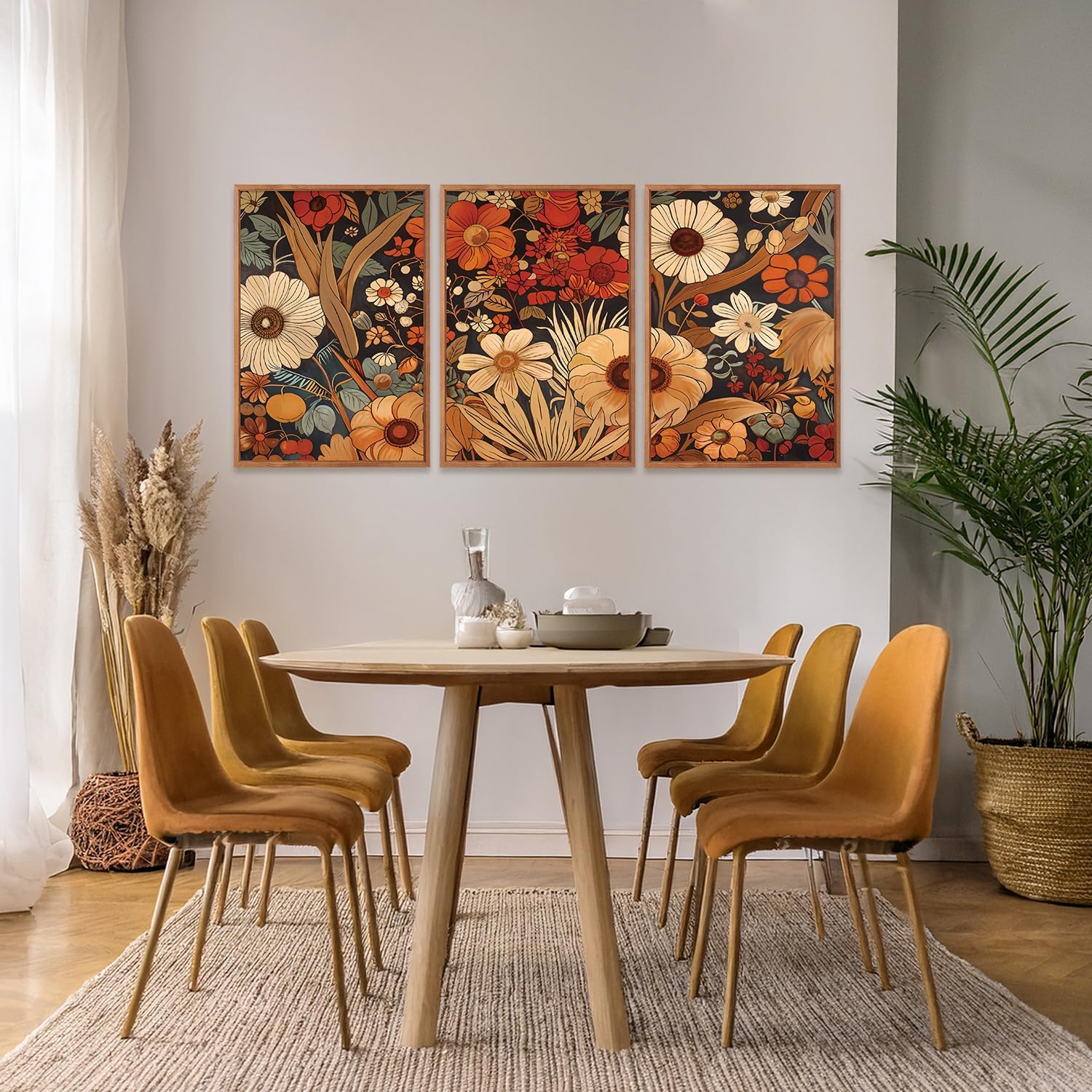 Aurlan Boho Burnt Orange Terracotta Wildflowers Framed Wall Art(16"x24"), 3 PCS Abstract Floral 3D Textured Canvas Artwork, Large Modern Vintage Botanical Nature Art Wall Decor for Home Office Living Room Bedroom