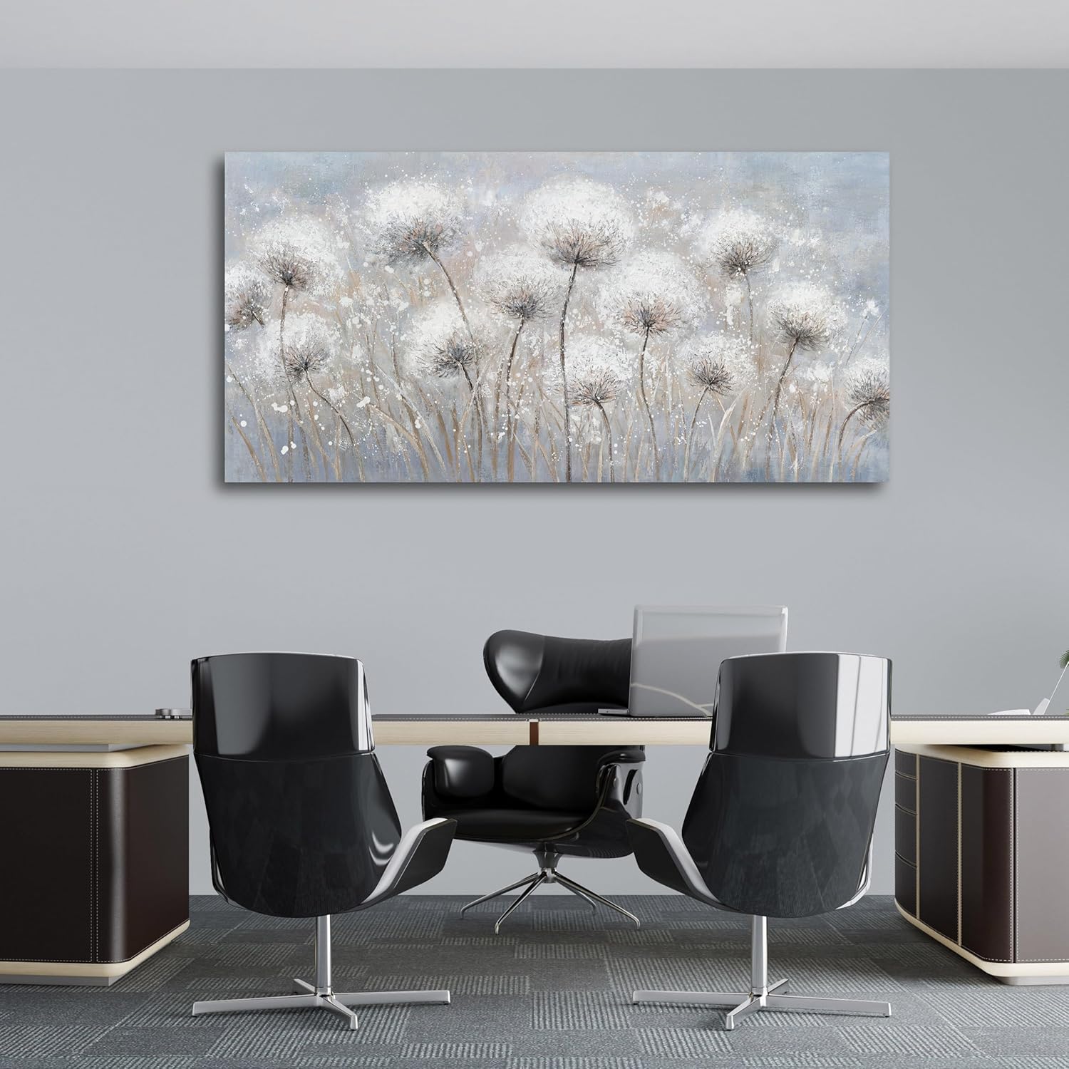 Belmrxne Floral Canvas Wall Art White Wall Decor Aesthetic Artwork Dandelion Canvas Painting for Living Room Bedroom Dining Room Office Home Decor 20x40 inch