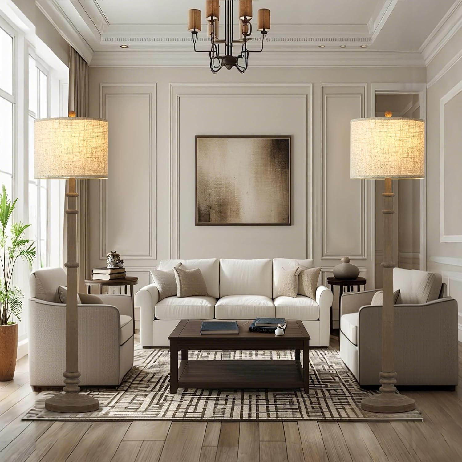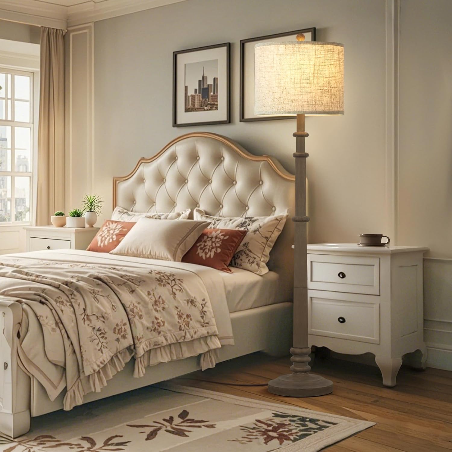 - 𝐕𝐞𝐫𝐬𝐚𝐭𝐢𝐥𝐞 𝐑𝐞𝐬𝐢𝐧 𝐅𝐥𝐨𝐨𝐫 𝐋𝐚𝐦𝐩 - Discover versatility with our farmhouse floor lamp, expertly molded from resin for lasting beauty and reliability. Its classic design, complemented by a crisp white fabric drum shade, seamlessly integrates into any decor scheme from modern to traditional. Ideal for creating a cozy atmosphere in bedrooms, living areas, or reading corners. Simple assembly ensures hassle-free setup