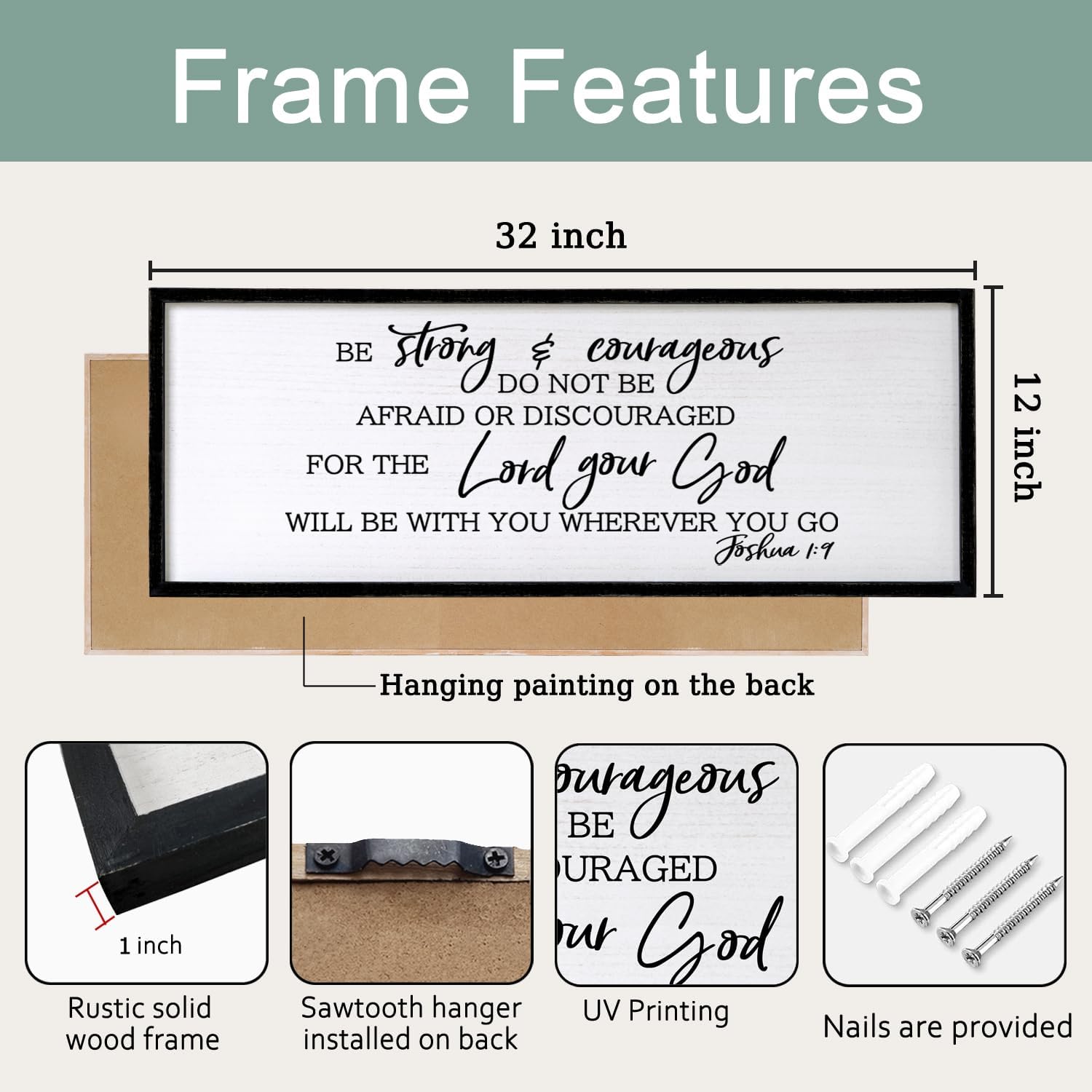 Be Strong And Courageous Sign Bible Verse Framed Wall Art, 32''×12'' Rustic Religious Christian Proverbs 3:5-6 Sign, Horizontal Holy Inspirational Catholic Scripture Decor