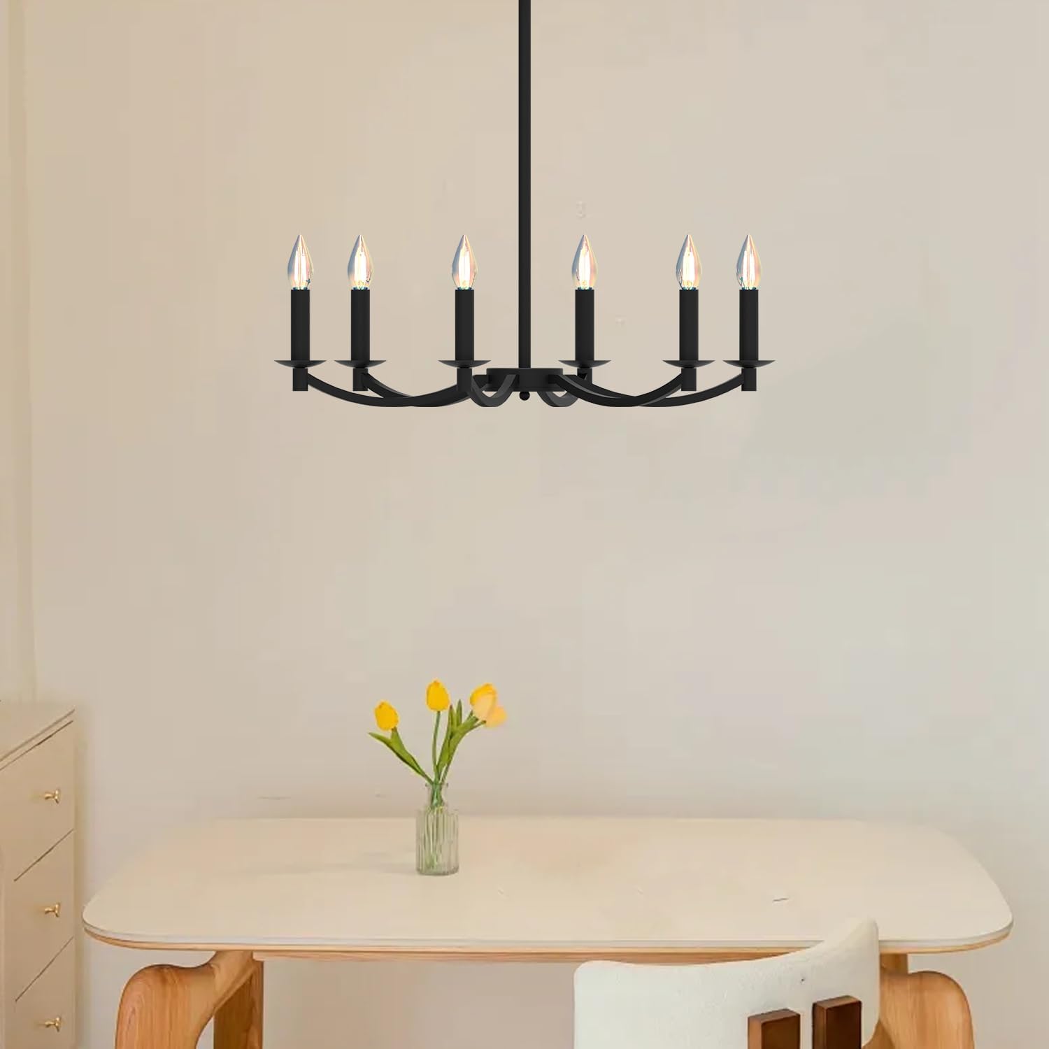 - 【LED E12 Bulbs】 The farmhouse black chandelier use LED E12 bulbs. The LED E12 bulbs are easy to install.