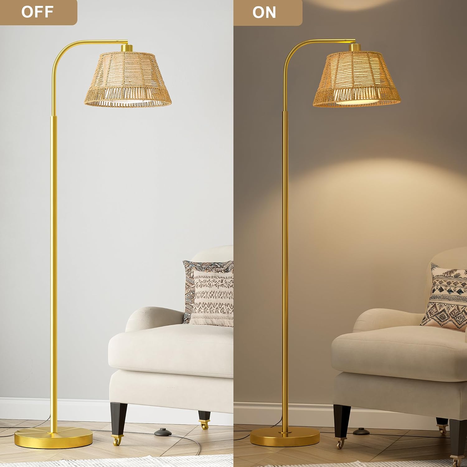 - 【Stepless Dimmable & 3 Color Temperatures】Saving your time to look for compatible bulbs, Our rattan floor lamp comes with an E26 smart bulb, which supports stepless brightness (1%-100%) and 3 color temperatures (3000K-6000K)and timer settings(1hour)as needed, This dimmable floor lamp also have pre-set modes offering various scenes such as: read, nursery, work and night light.The memory function can help you remember the last setting.