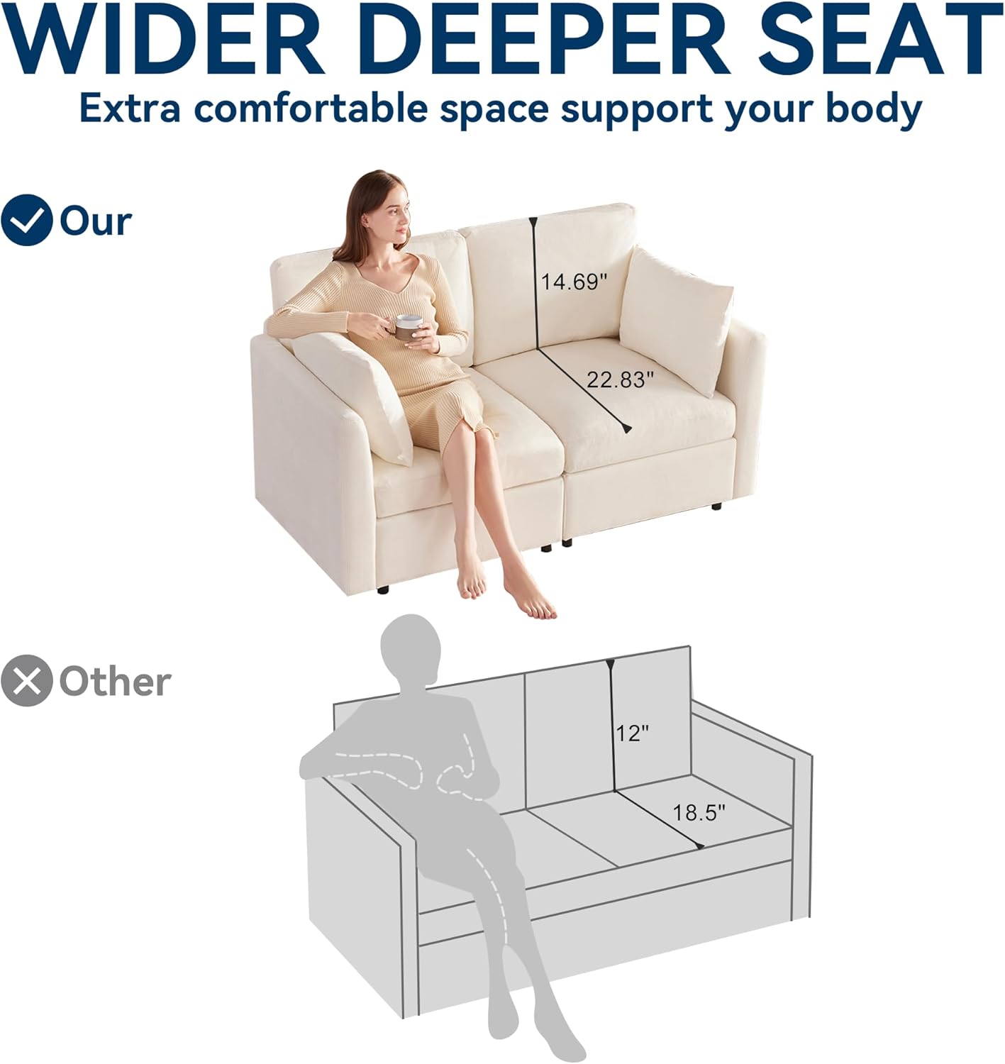 - Effortless Assembly: The modern sofa comes with easy-to-follow instructions and an installation video for a hassle-free setup. Removable, machine-washable covers, making it simple to keep your loveseat looking new. Please note that the cushions are vacuum-sealed and may require up to 48 hours to fully regain their original shape.
