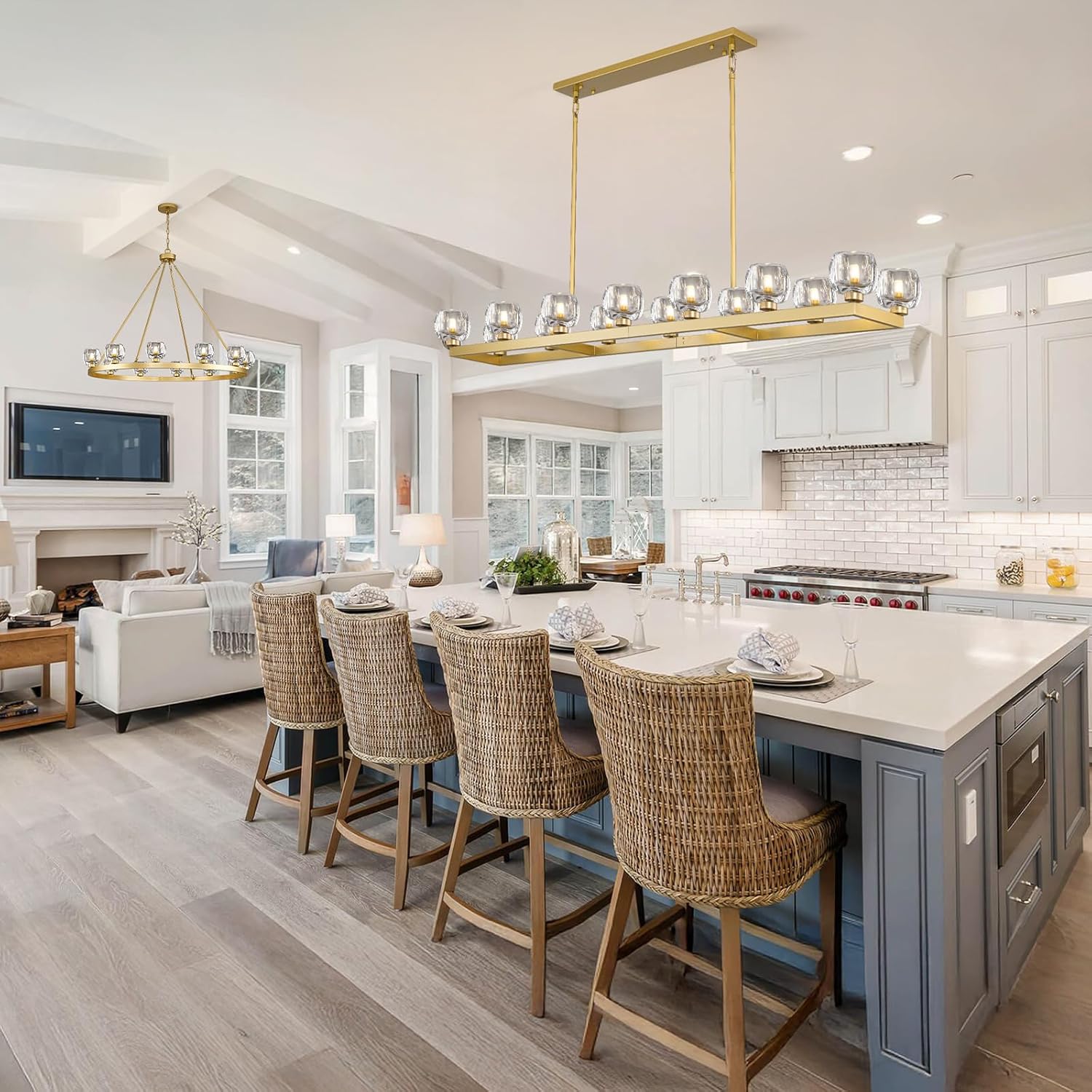 - 【14-Light Chandelier】Gold rectangle chandelier offers 360° light coverage to brighten your space & create a cozy vibe. The linear chandelier for dining room requires 14 G9 bulbs and available for infinite dimming via a dimmer. (Dimmable bulbs & dimmer not included).