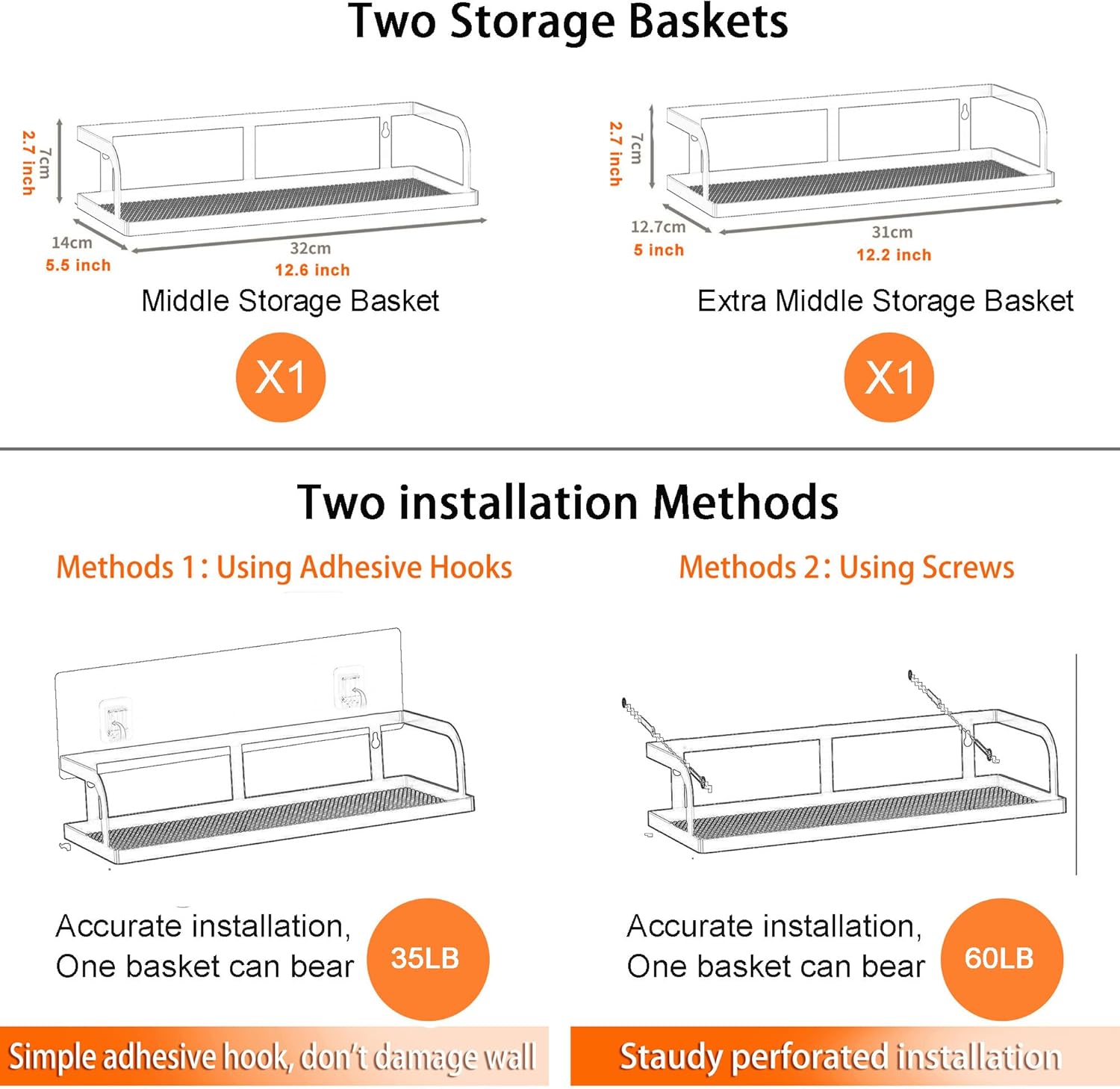 PUSDON Metal Wall Hanging Basket 2 Packs DIY Suitable for Multiple Scenes - Black Hollowout 12.6in
