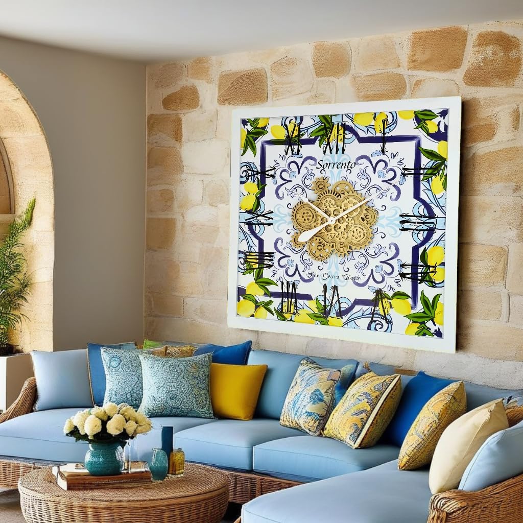 - Wall Clock Italy Collection with Real Moving Gears is an Art Timepiece inspired by the Famous Amalfi coast Tiles in Italy