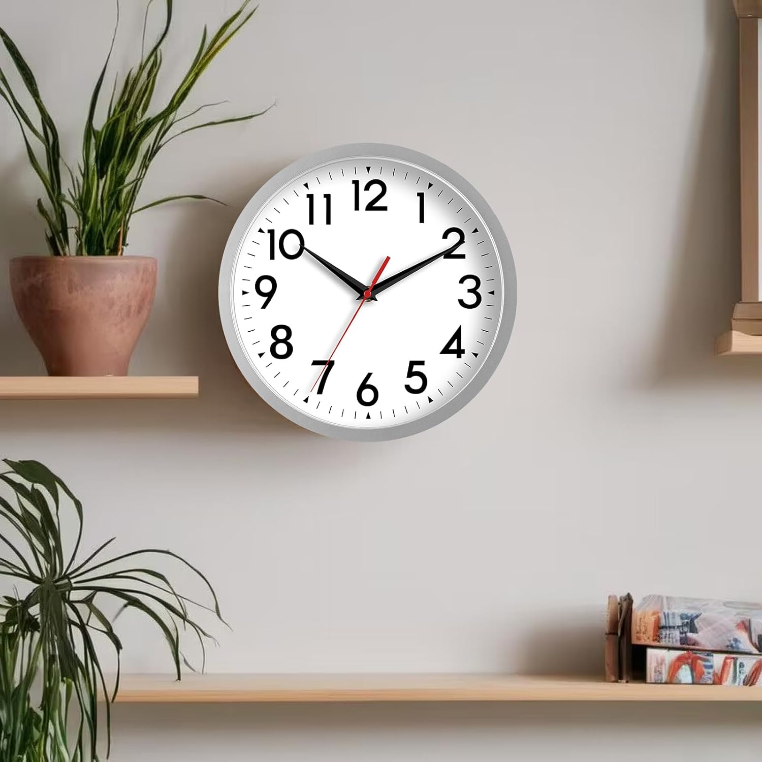 Wall Clock Small Analog 8 Inch Silent Non Ticking Battery Operated Modern Simple Decorative for Kitchen Office Bedroom Bathroom Living Room(Silver)